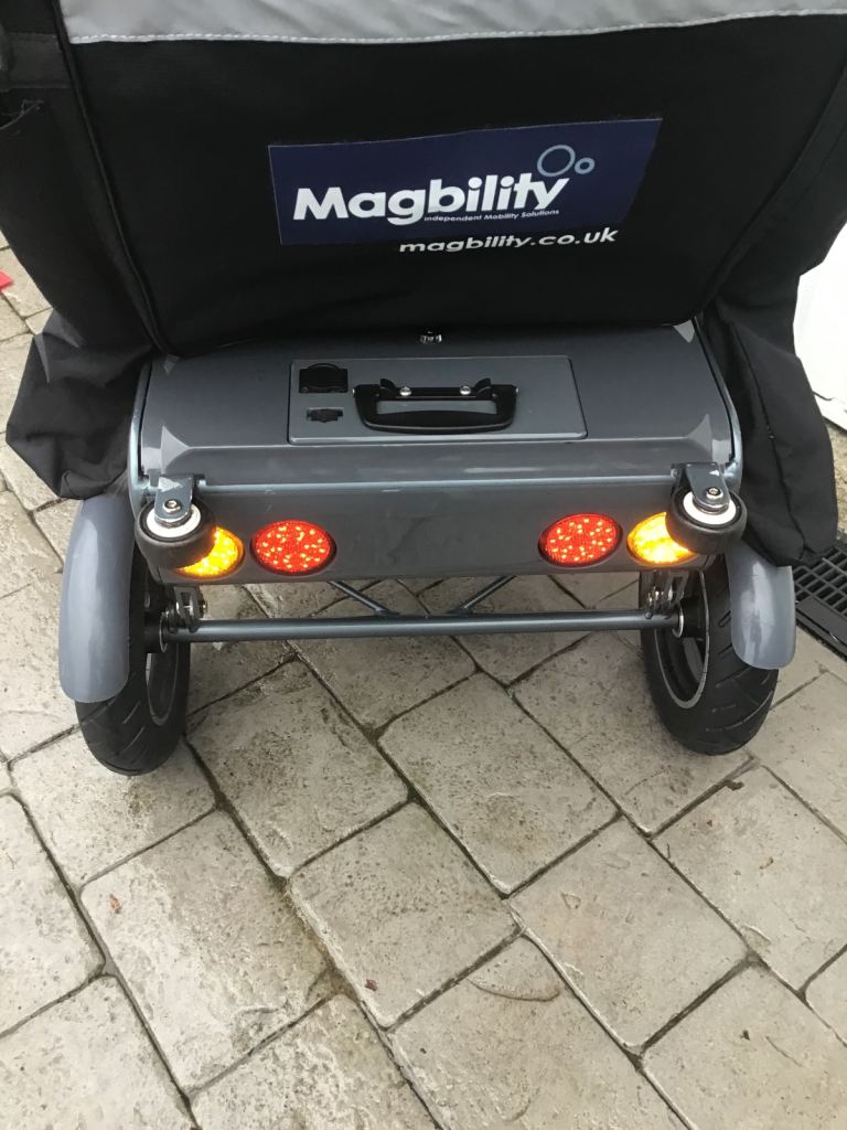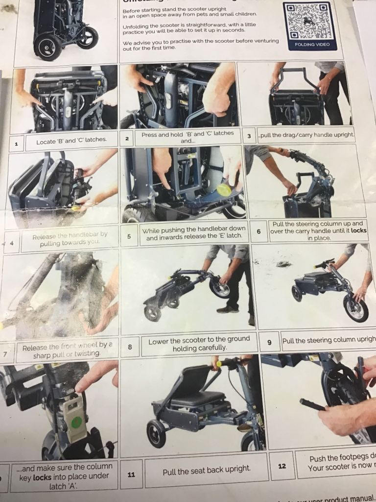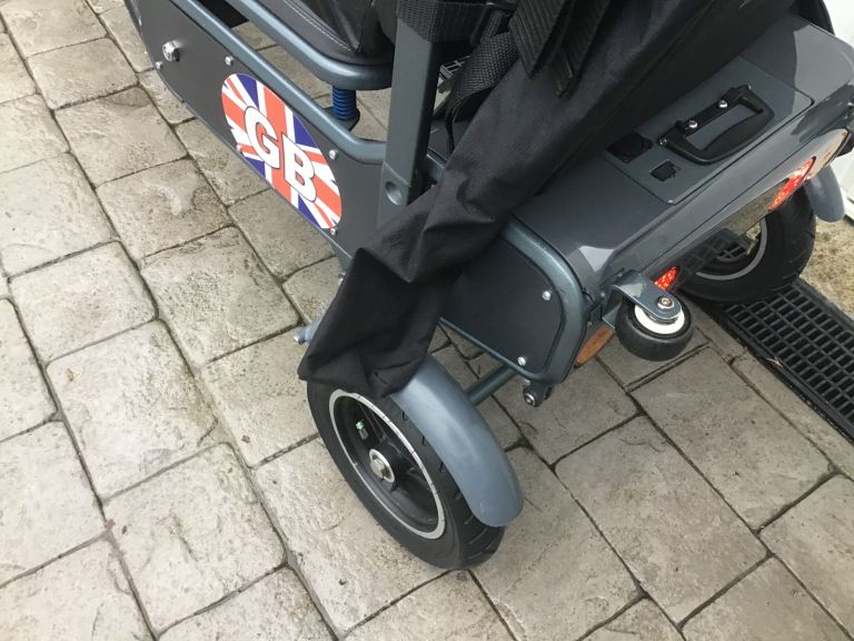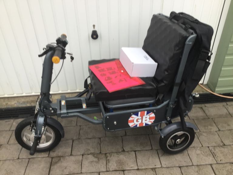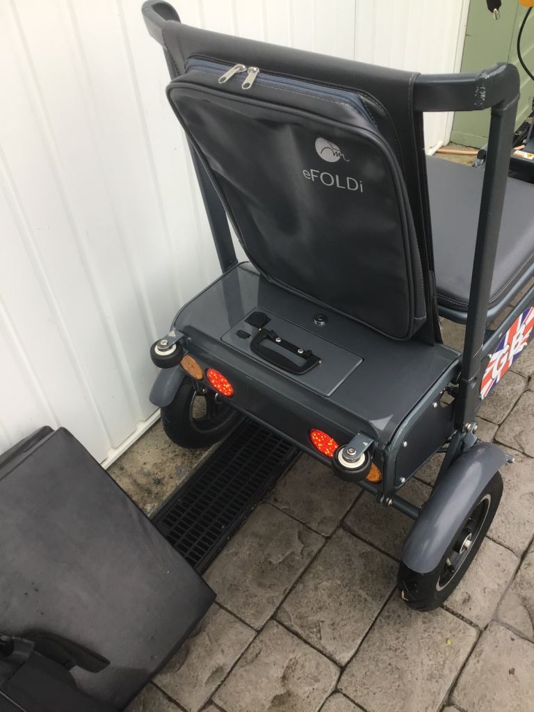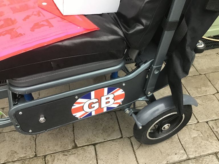 The bad points:- This came from a deceased estate and I am led to believe the GB stickers on the side are to cover a sticky patch on one side of the scooter, they will easily come off if you decide you don’t want them, the efoldi cushion has some tears on it from storage in the car but are all on the underside so you don’t see them when it’s in use.