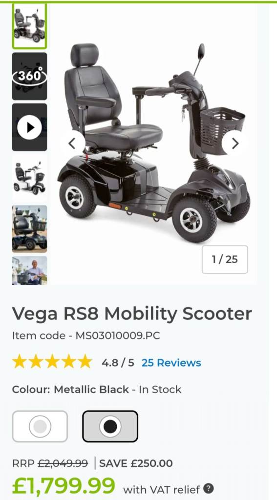 It's a top of the range, comfortable, luxurious class 3 road legal model with lights, a large comfortable padded captains swivel seat, the latest suspension technology front and rear, pneumatic 12 inch tyres and a front basket.