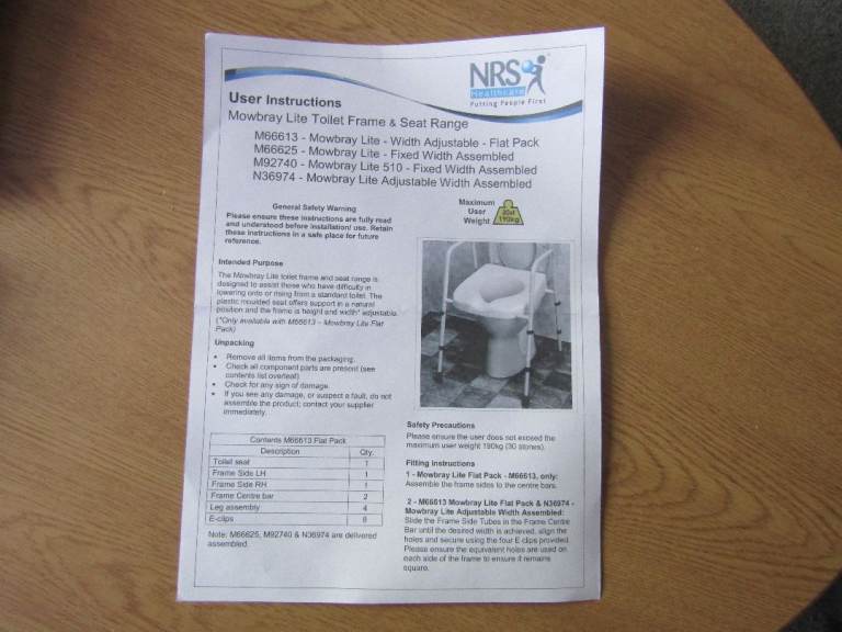 A NRS TOILET SEAT RAISER IN BOX AS NEW. HAS NOT BEEN FITTED! FROM A PET FREE NON SMOKING HOME!
