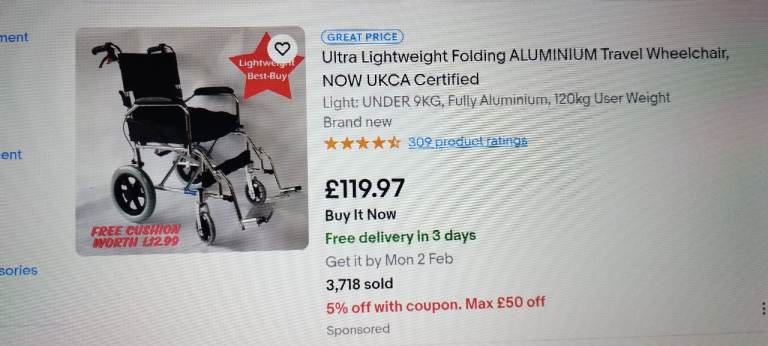Posting for 7+ yearsAdult Foldable Wheelchair - excellent condition