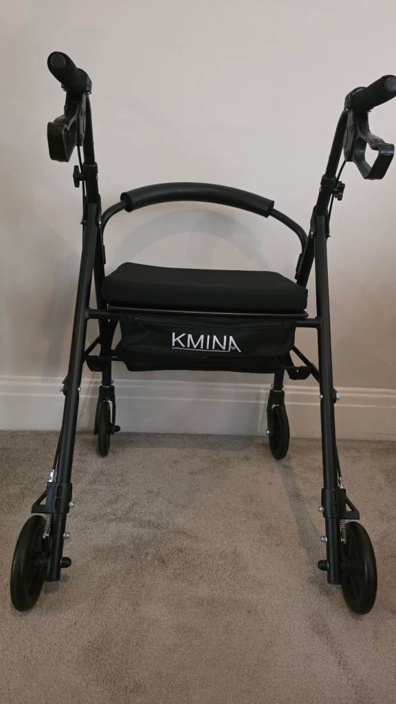 Adult Walker, Walker for Seniors with Seat, 4 Wheels, Brake Lever, Black | KMINA |