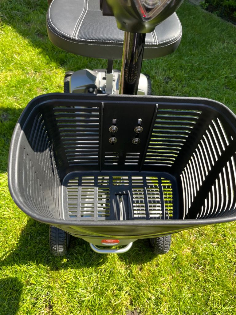 Complete with battery , charger , basket , rain cover for when not in use ( never used ), 2 x keys. Includes instruction manual and purchase receipts.