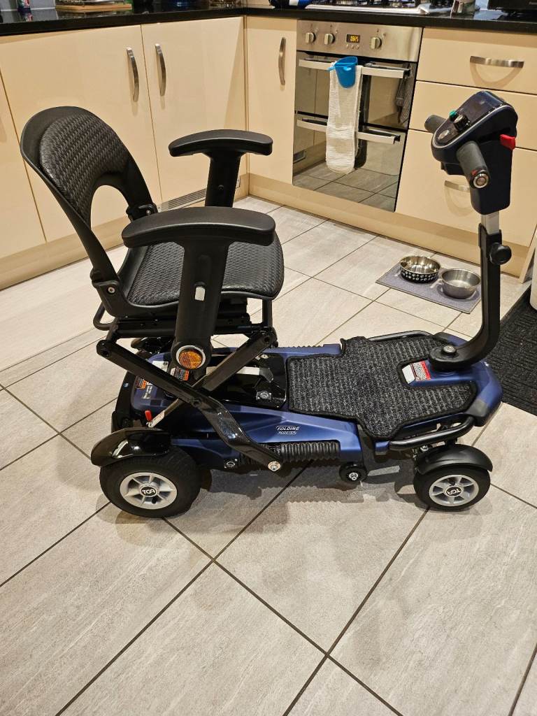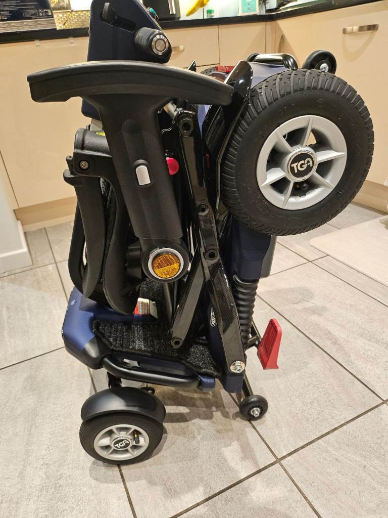 As new TGA Minimo autofold mobility scooter. Only been used outside about 5 times. This is the Rolls Royce of autofolding scooters. Folds up and fits in car boot. Can be taken on any airline. Go to TGA website and look at full spec. Still selling for £2995 brand new. Charger , remote battery connection lead, 1 battery key and 1 key fob supplied.