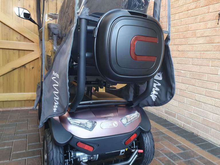 This Vortex has been fitted with the optional protective canopy for multi-season use. This stylishly engineered accessory transforms the Vortex into an enclosed electric travel companion while maintaining a connection with the outside. Compact Top Box comes as standard with delivery of the Solid Canopy frame. Upgrade the Solid Canopy with optional additional clear sides for the perfect insulated yet ventilated canopy for all weathers. Transform your Vortex into the multi-season electric travel companion with this stylishly engineered upgrade. The textile sides have been exclusively designed & made in the UK as a bespoke, all-encompassing solution.