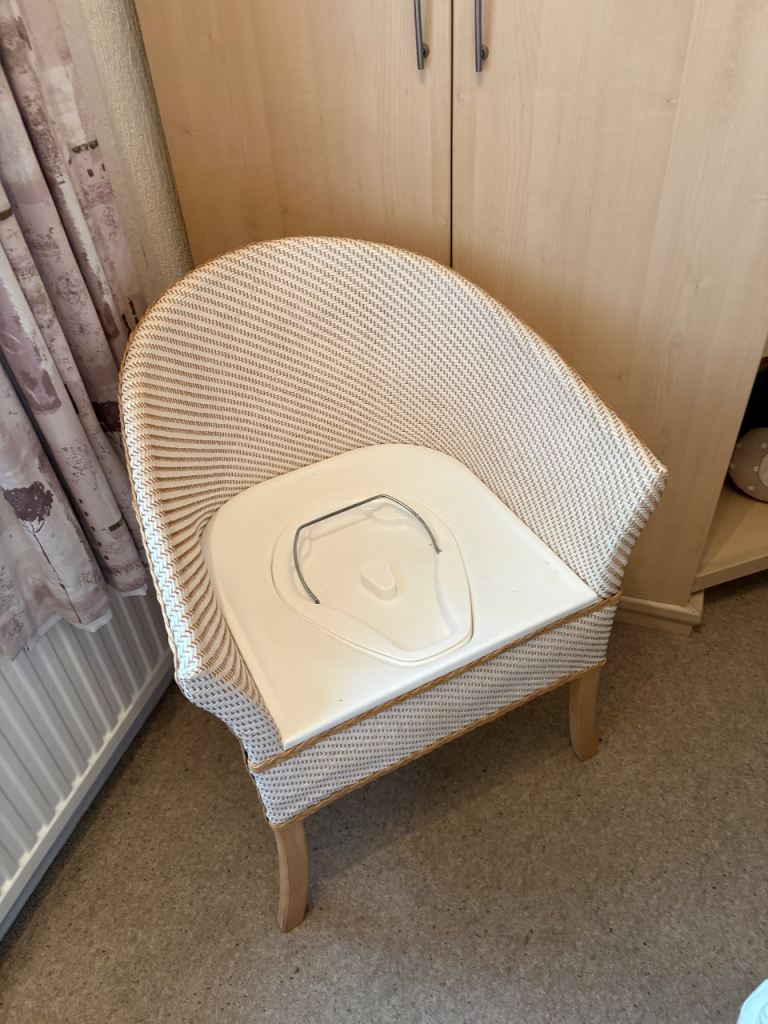 Lovely commode chair not obtrusive looks like a comfortable chair. Cost over £150