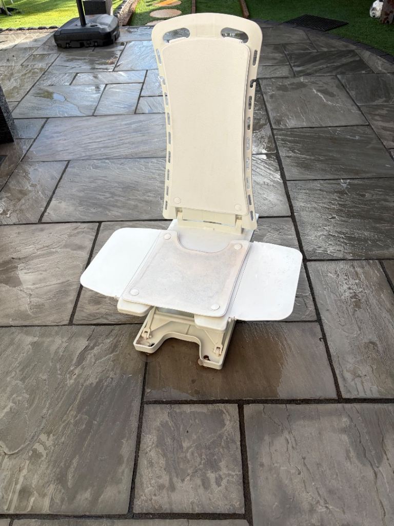 Adjustable legs. Removable pot to wash. Lid on so can be used as seat.