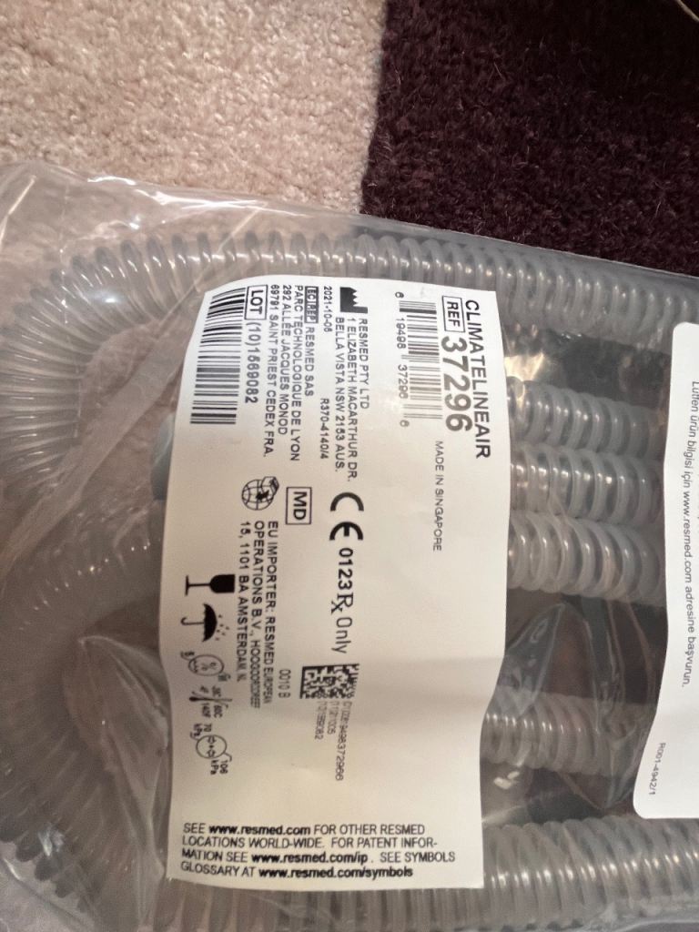 CPAP RedMed 10 Air Sense with power cable, unused air tube, spare air filters and the unused humidity chamber for the machine all in the ag.