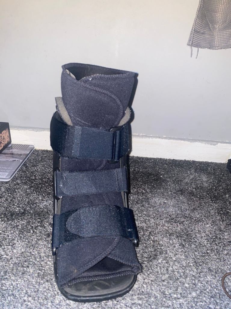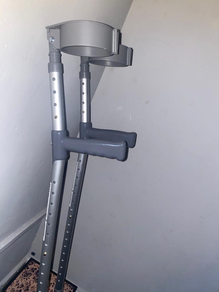 Crutches and fracture walker boot