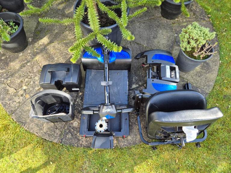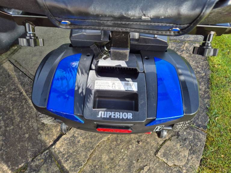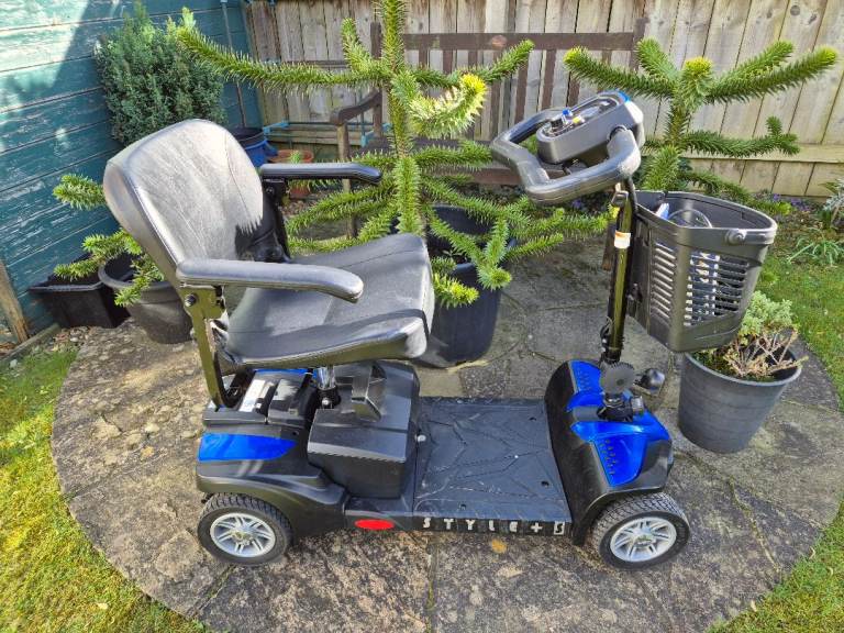 For Sale - Drive Style Plus Superior 4mph 'Boot Type' Mobility Scooter. It is in excellent condition with shiny blue panels. It dismantles in to 5 sections for storage and transportation. At only 48cm wide and 108cm in length, it is very agile and perfectly suited for use inside a busy supermarket or home. It features full suspension which is a rare luxury feature on a boot type scooter and solid rubber tyres for a comfortable smooth ride over rough ground. It also has an adjustable tiller, wraparound type handles, a 360 degree swivel seat, a front shopping basket and an automatic brake. Being the higher spec 'Plus' model it also features a front LED light, sporty alloy wheels and two charging ports, (one being high level). The top speed is 4mph and the maximum range is 13 miles as it has the the upgraded larger 18ah batteries. The maximum user weight is 20 stone. It will be sold with the manual, battery charger and key. Expensive new. Comes from a pet and smoke free home. Possible local delivery. Please call me. (No Texts please).