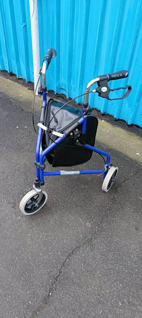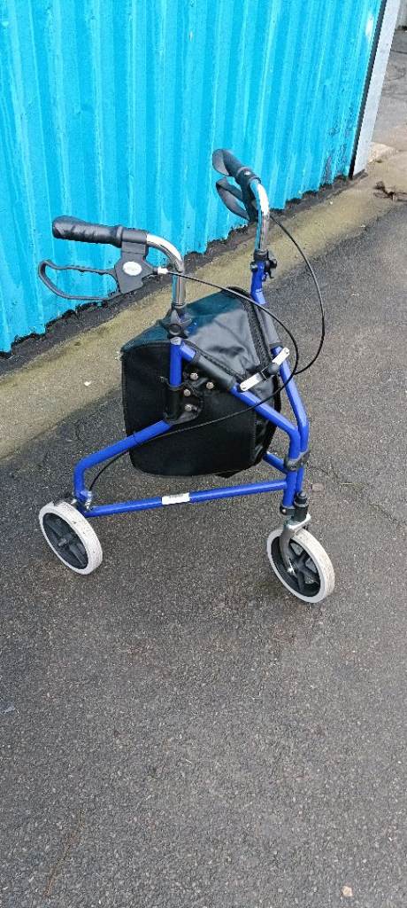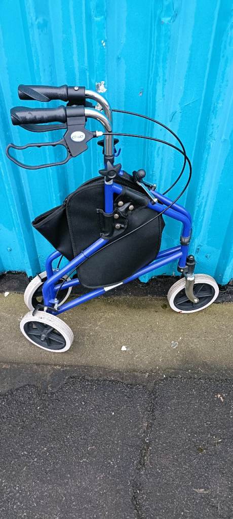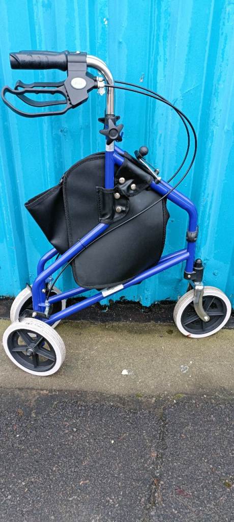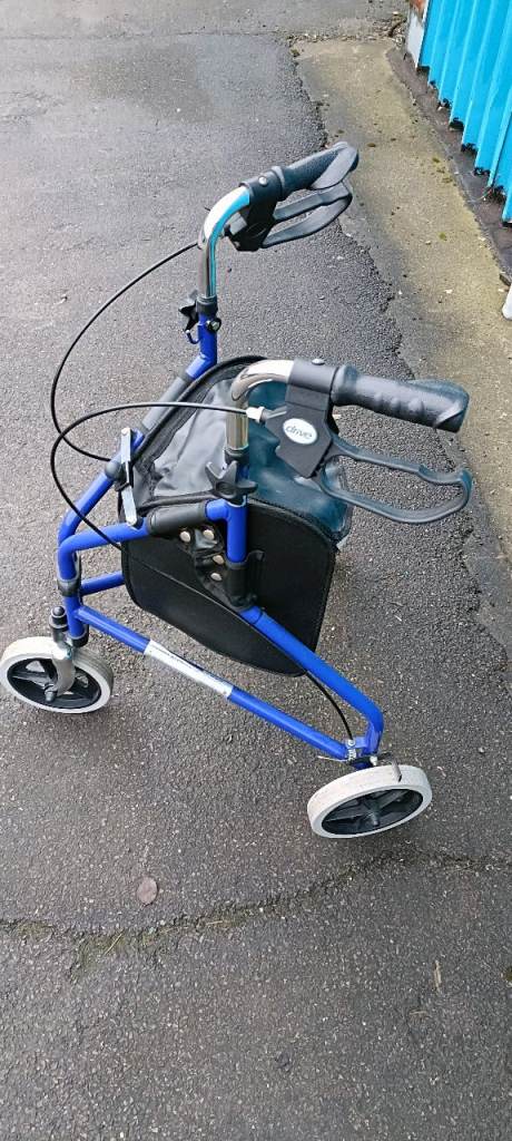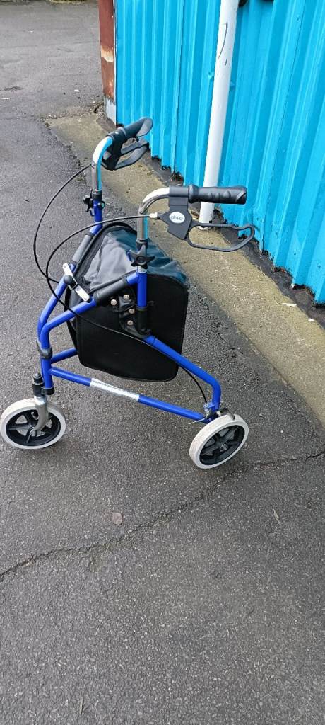 For sale an as new Drive lightweight Three wheel rollator with shopping storage pouch , fully folding and with lockable and adjustable cable brakes, in excellent clean condition.