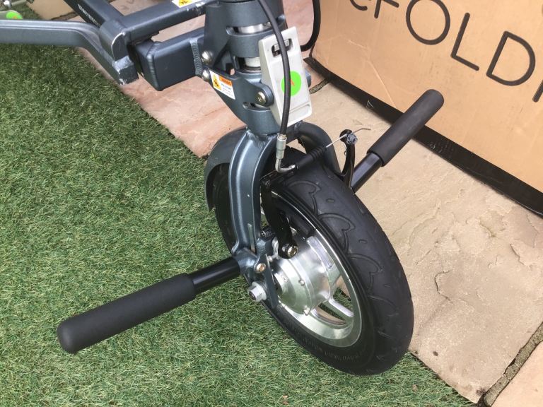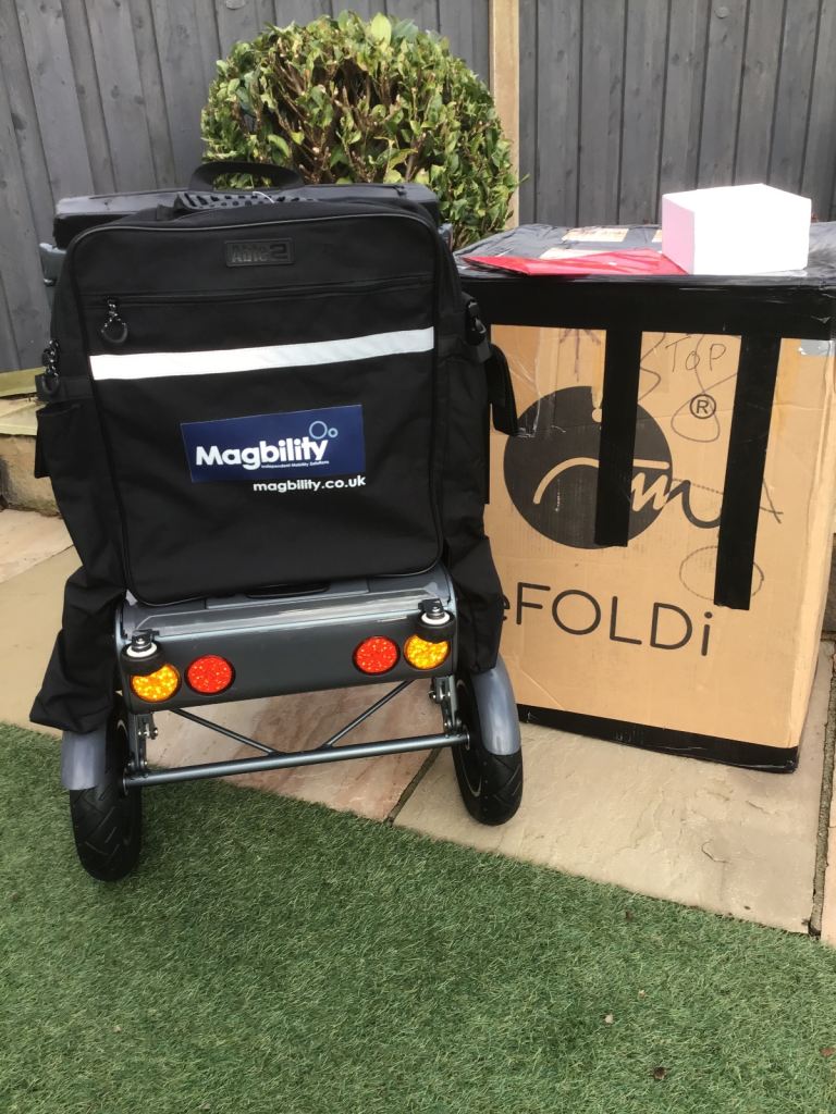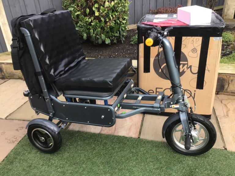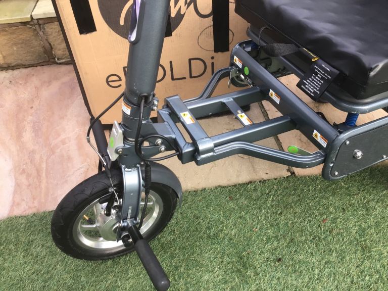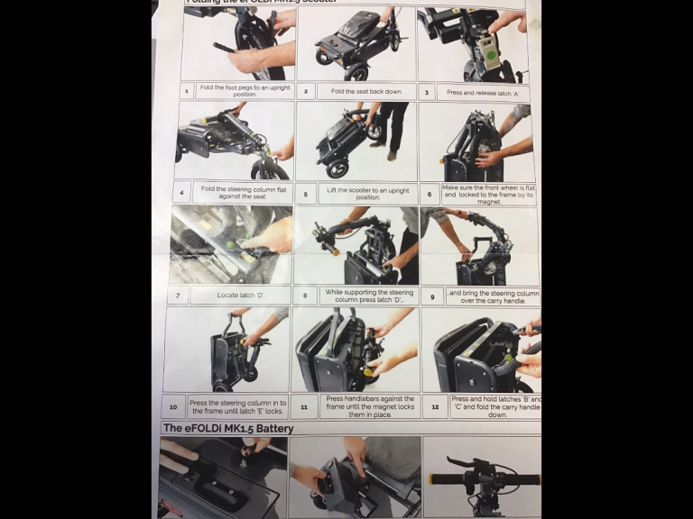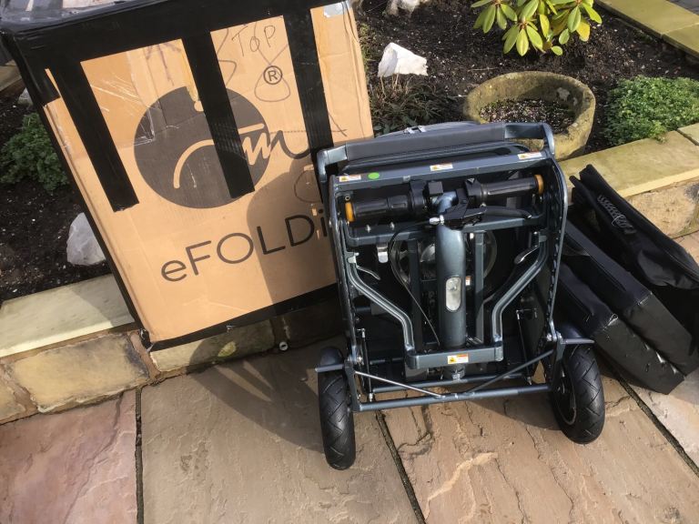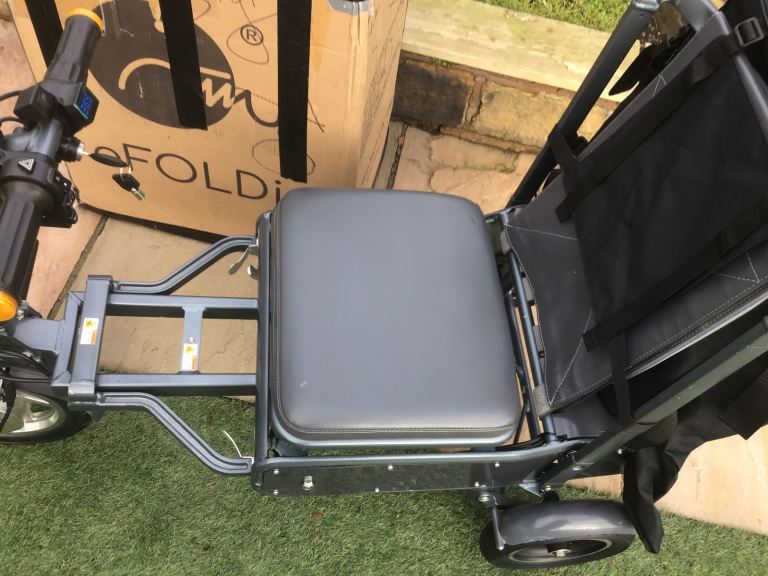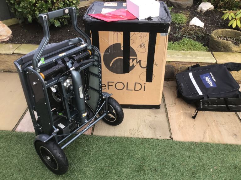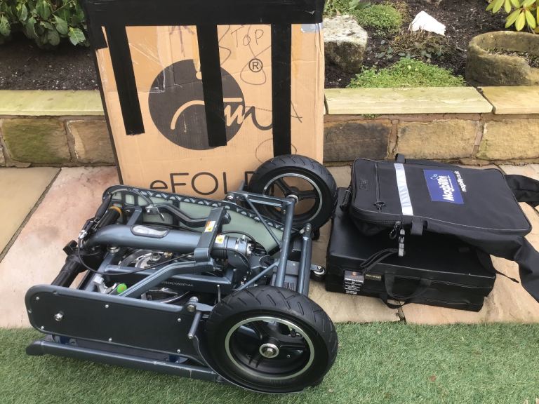 This is an Efoldi Explorer Mobility Scooter designed by Richard Branson and is a lightweight design, only weighs 17kg and fold up small to fit in the car, also airline and cruise liner approved to take on your holidays.