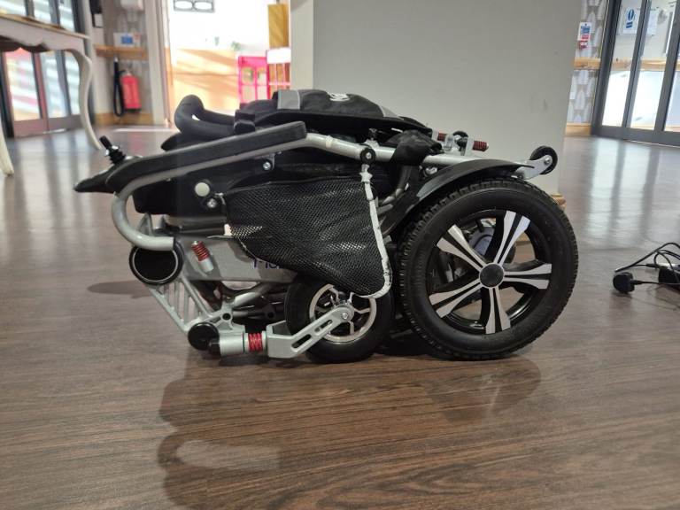 The Ultra-Light electric wheelchair can reach maximum speeds of 4mph and travel up to 13 miles on a fully charged battery. The wheelchair is perfect for domestic and outdoor use such as supermarkets, shopping centres and parks. There's a handy under seat storage bag, as well as a zippered side pocket, to carry essentials with you. Fitted electromagnetic brakes and an adjustable seat-belt.