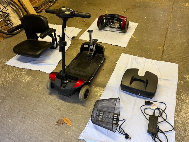 mobility scooter in good condition but in need of new batteries. A versatile scooter that dismantles into 4 parts to fit in even a smaller car boot. Stable and simple to use.