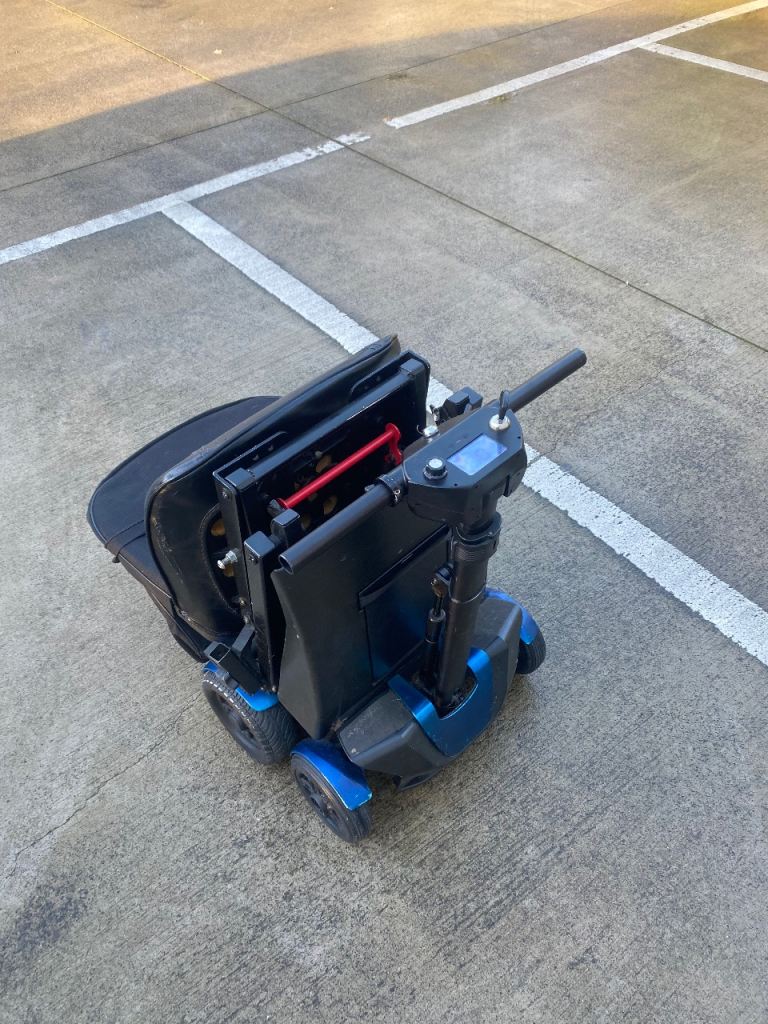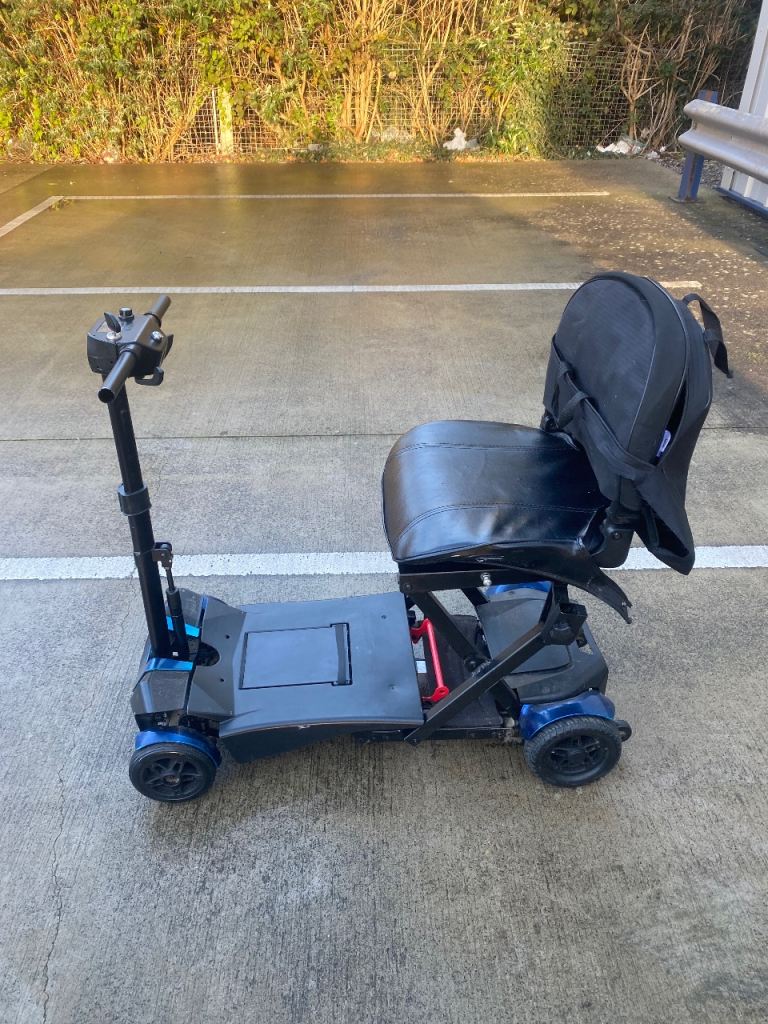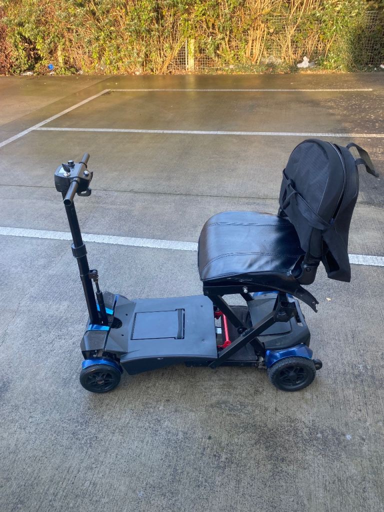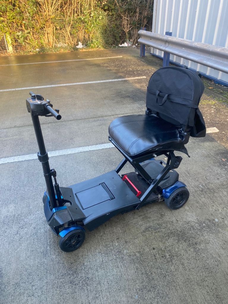 Automatically folding mobility scooter with lithium battery and charger. This can be pulled along like a suitcase works absolutely perfect and folds down in seconds