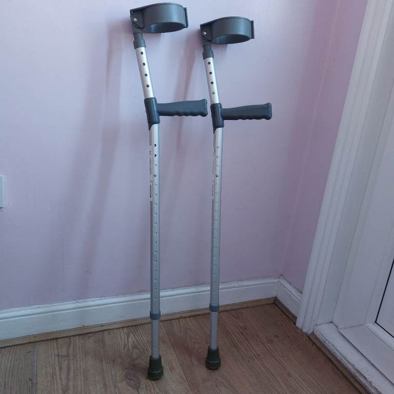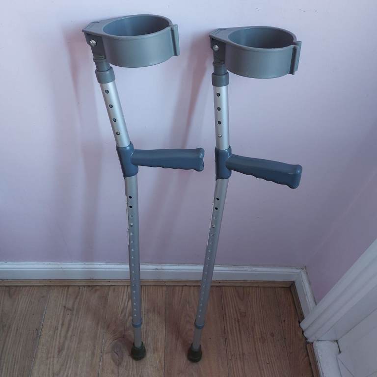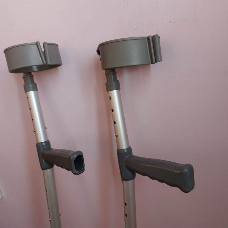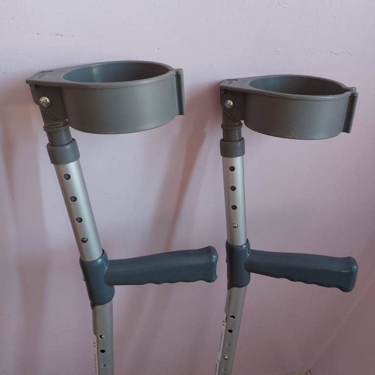 A useful pair of SimplyMed privately purchased fully adjustable adult crutches