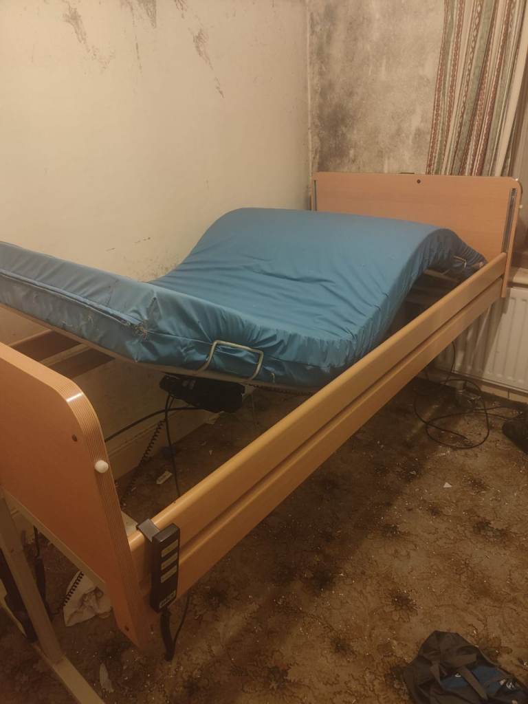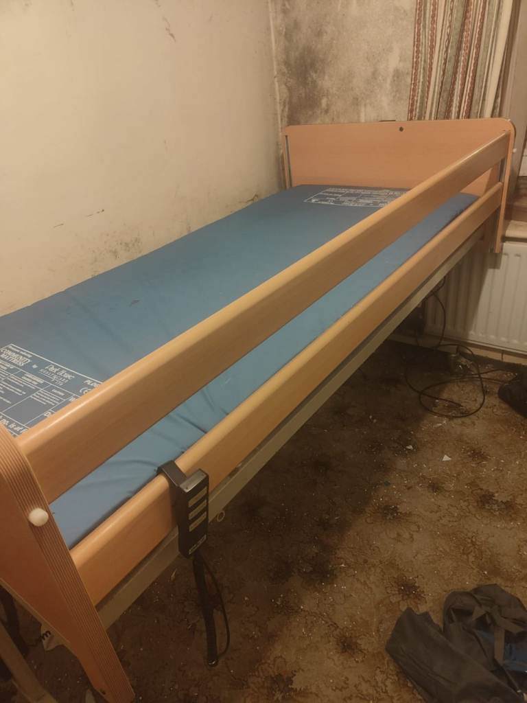 Fully functioning hospital bed. Selling on behalf of my father in law as he is having to move house due to many issues with the house. Looking for a really quick sale and the bed would have to be collected with a van. The bed is very heavy so would need more than 1 person to collect. We are really time limited so open to pretty much any offer. Size 43-84inches. Message with any questions but please, no time wasters. The bed is in great condition and fully functioning.