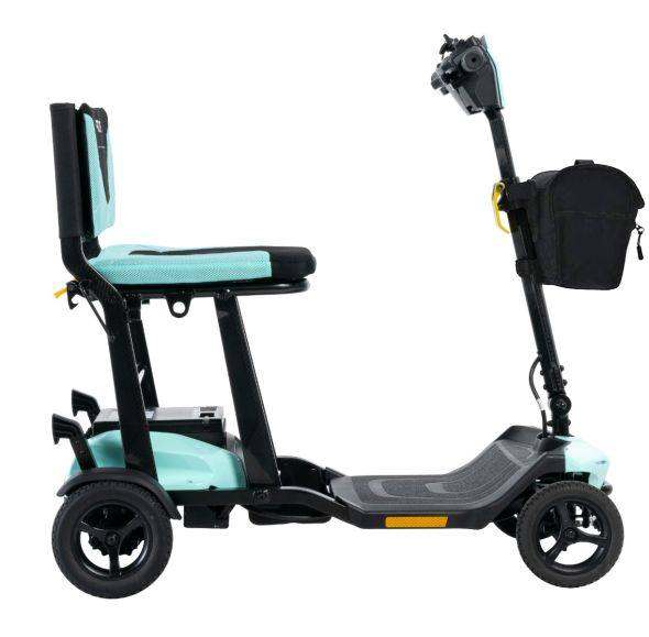 Weighing only 41.6 pounds without its lithium battery, it takes just seconds for the Go Go Super Portable to fold into a compact, 12" high bundle without ever having to remove the seat. It can be stood upright or laid flat, occupying minimum space in car trunks, under cruise ship beds, in closets, and other small enviorments.