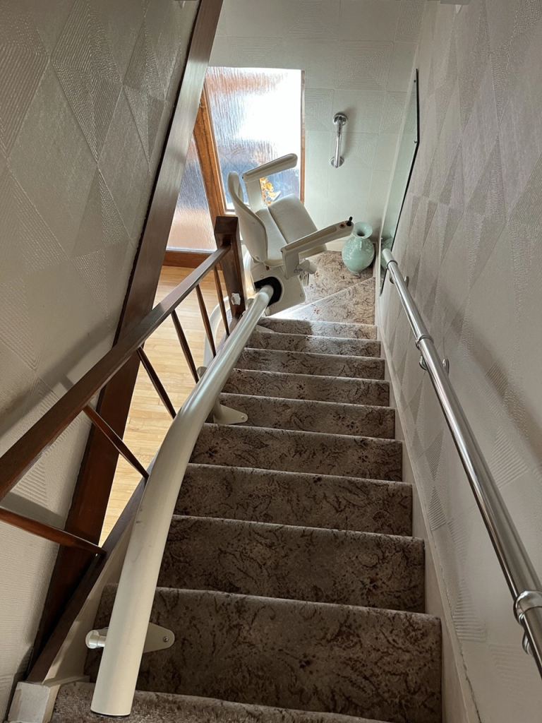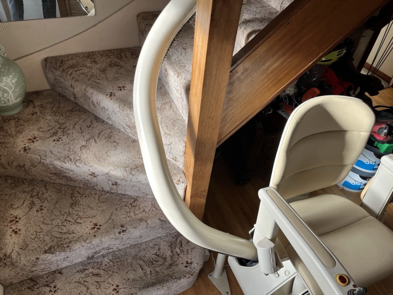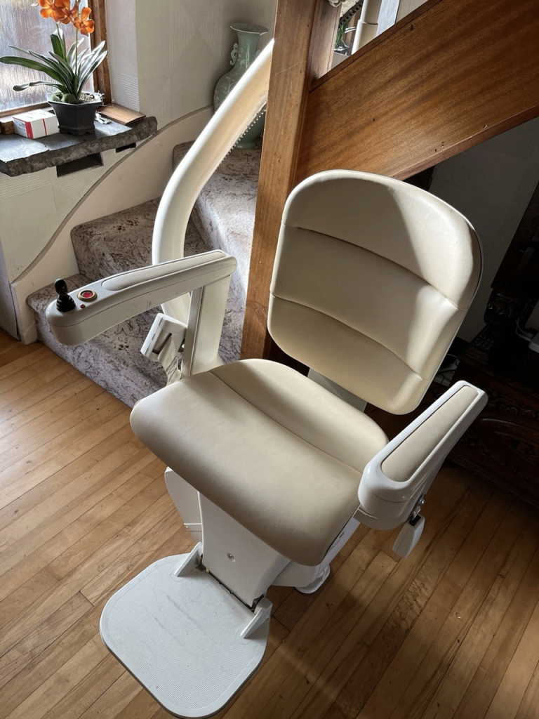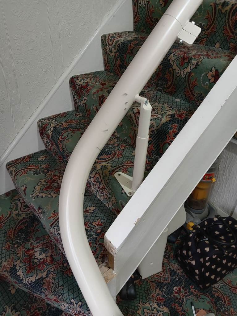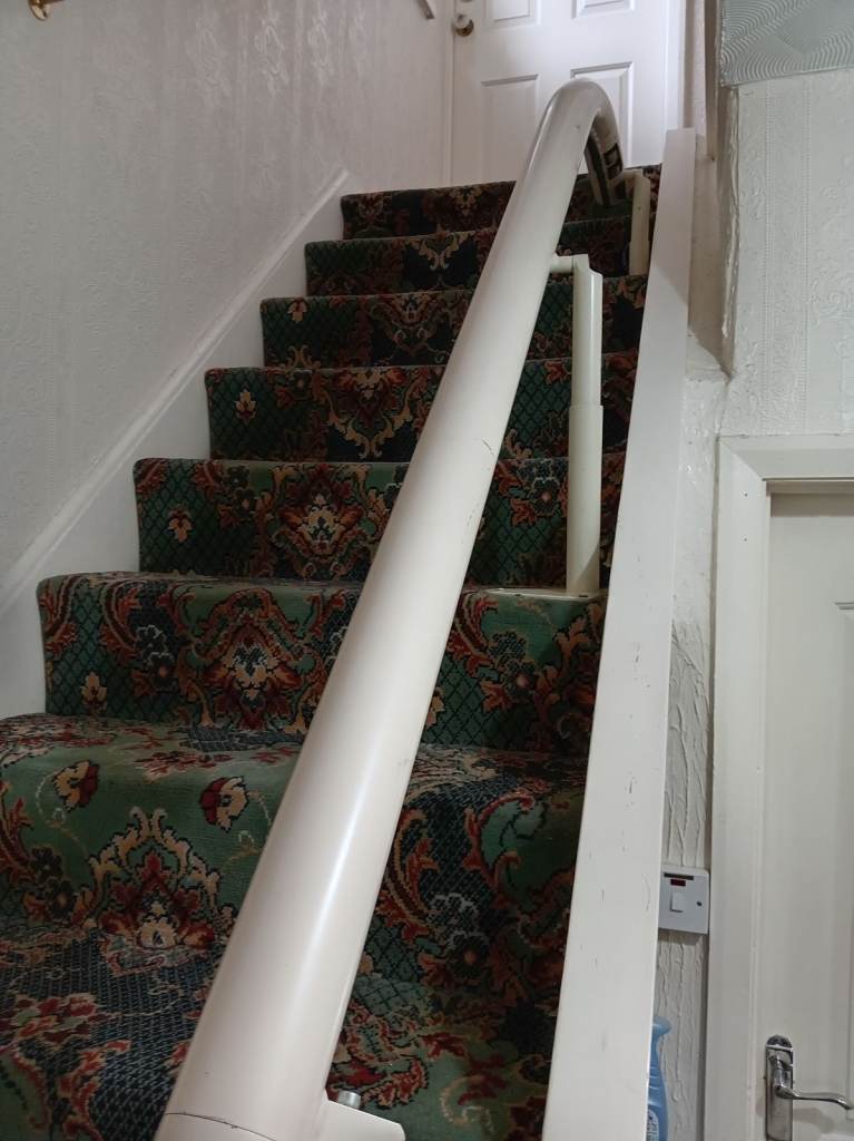 Working stair lift, purchased new in 2021, removed recently, was in good working condition but now not needed. Fits type of stairway shown. Accessories included. Buyer collect only, in three main parts, very heavy.