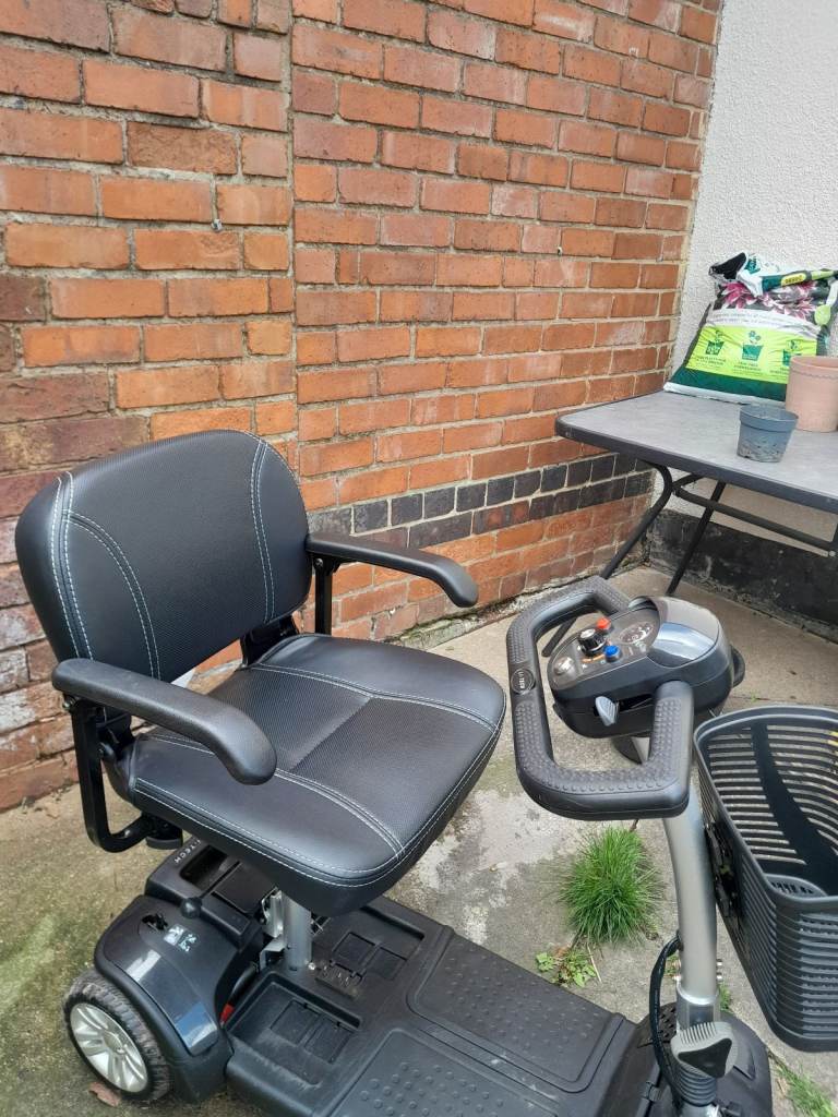 Excellent condition,black scooter, only been used 10 times,comes with water proof cover.Adjustable arm and seat levels,solid wheels so no punctures.