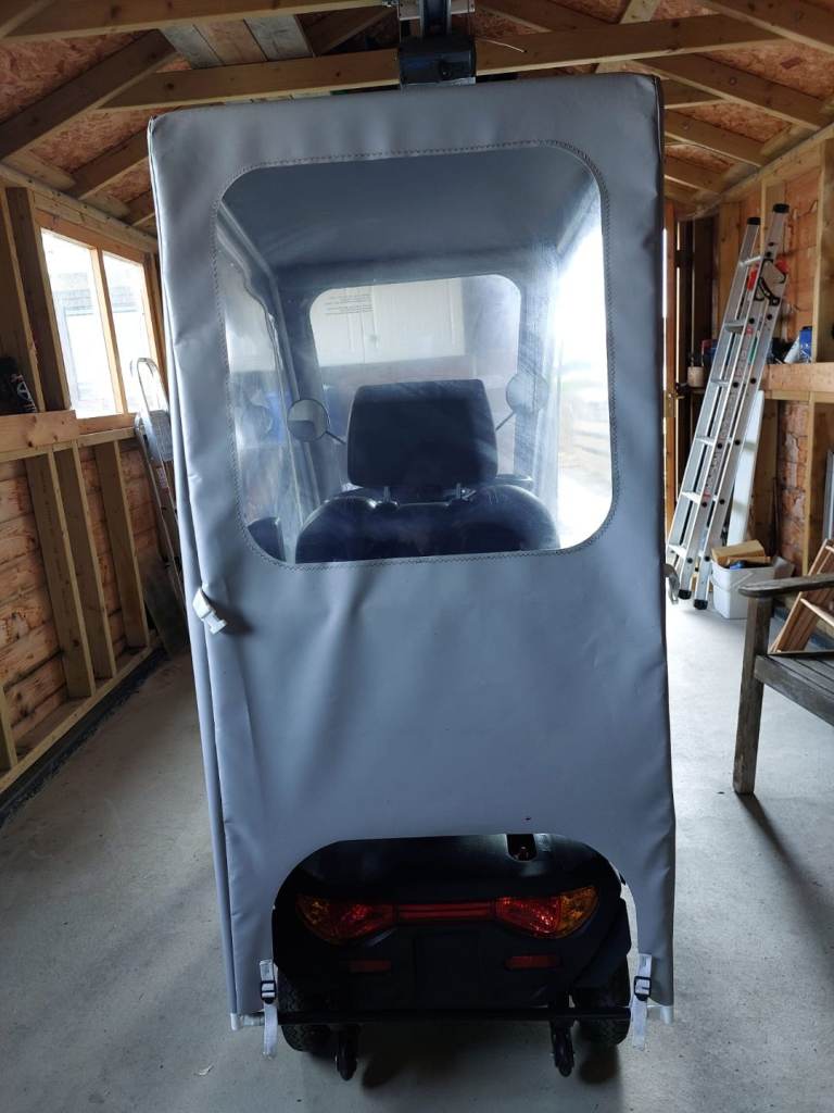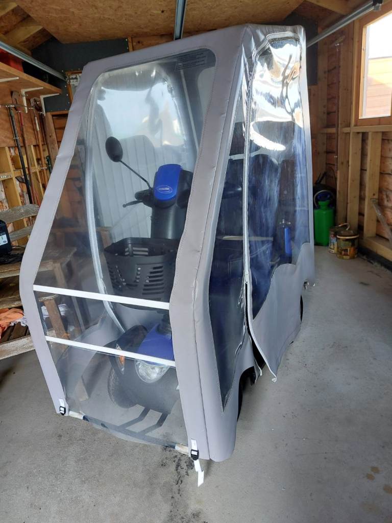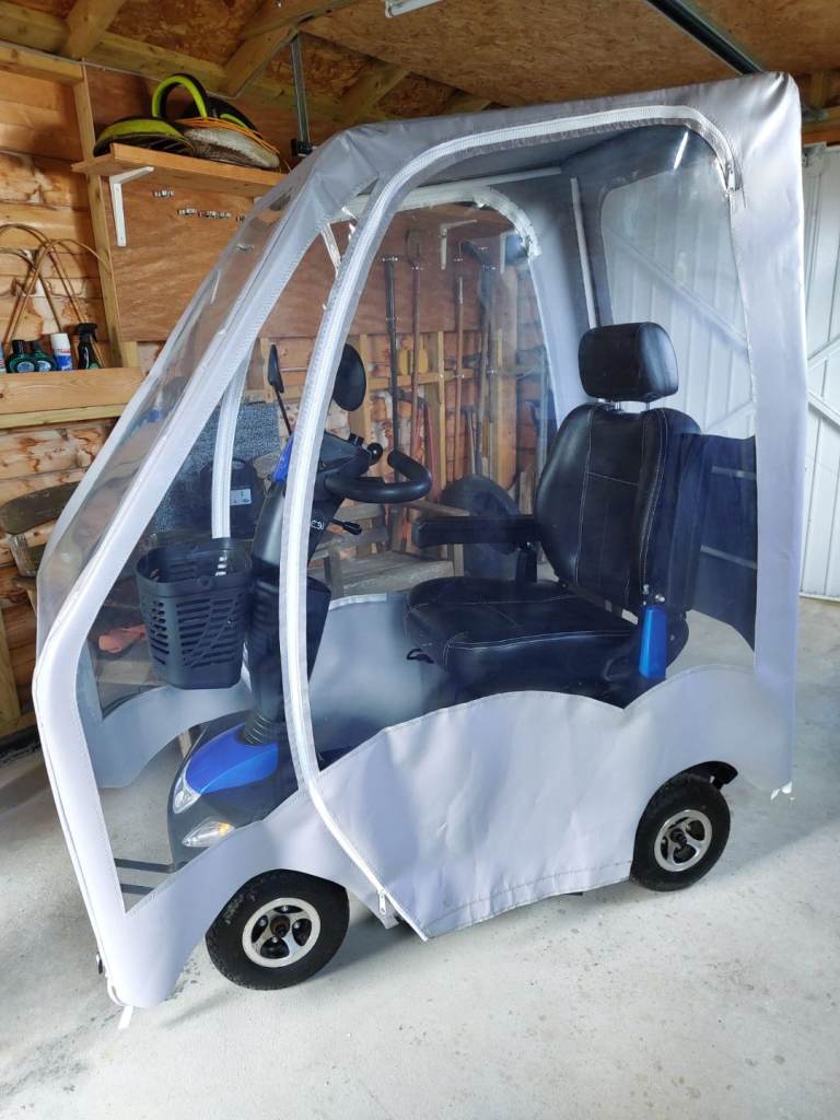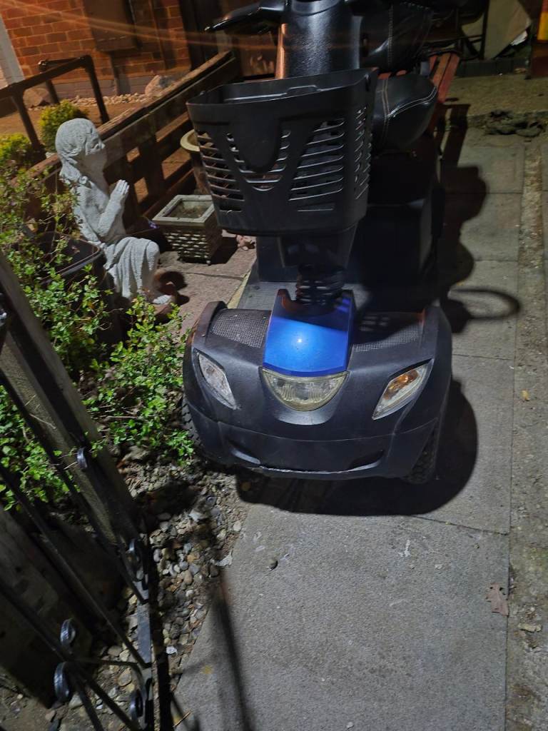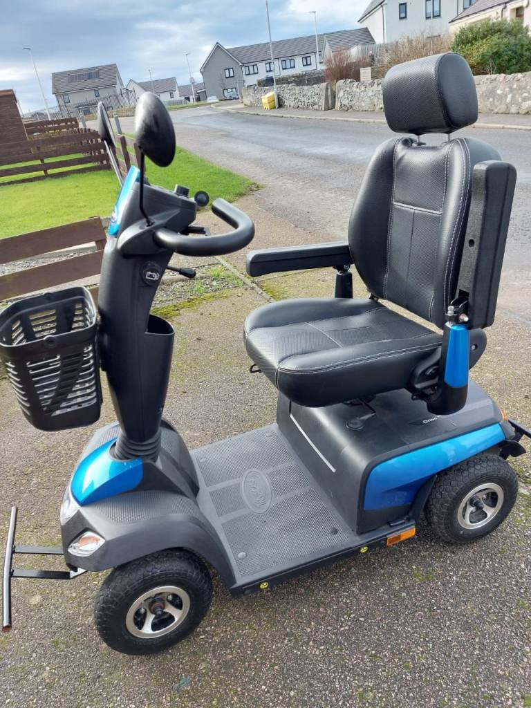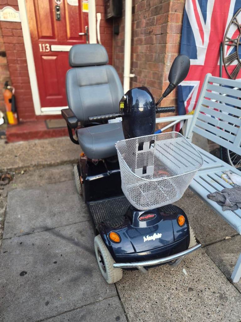 Hardly used, excellent condition. Designed for both pavement and road use. Top speed of 8mph with a range of 21 miles. Comes with full waterproof canopy.