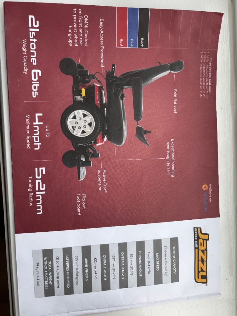Posting for under a monthJazzy Pride 600 ES mobility scooter