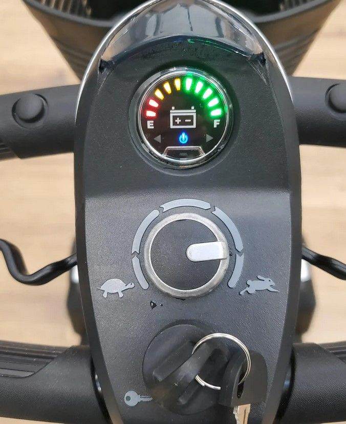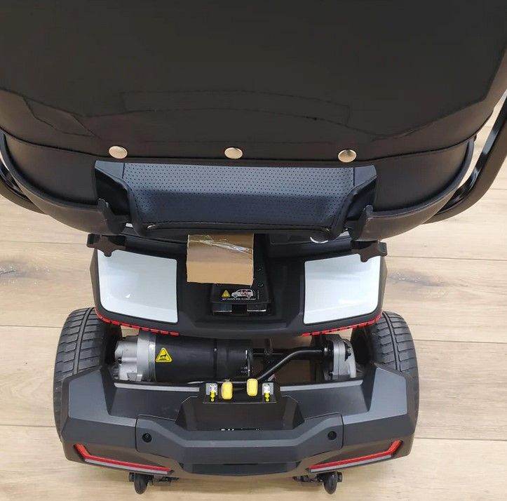 This is a top of the range model with 2 separate motors, and the rear wheels work independently when needed which allows a really tight turning circle. Ideal for shops and other small spaces. It breaks down to fit into most car boots or a people carrier/van. It has a removable battery pack (housing 2 separate batteries) which lifts off. The seat lifts off, as do the armrests if need be. There is a front basket which is also removable. The rear axle easily detaches from the platform and the steering column folds down onto the platform. It comes with extra sets of panel covers to give it a different look if you want to change the colour scheme. It has barely been used as my disability progressed making it hard for me to lift the components in and out of my car, and I have no use for it around my home area. All-in-all it's as good as new. The batteries have been kept charged and are fully functional. Charger included. It has front and rear LED lights. I will throw in the scooter cover and the basket cover which are of good quality. I will try to post better photos later but it's easy to look up online in the meantime. Open to sensible offers. Feel free to come take a look.