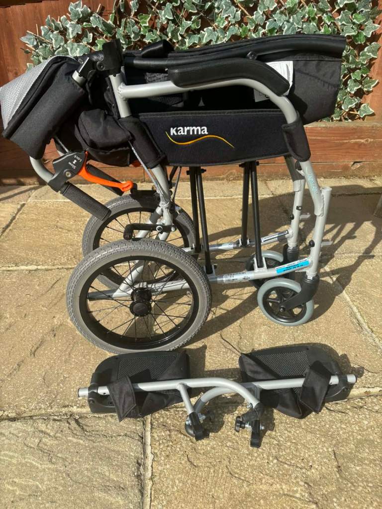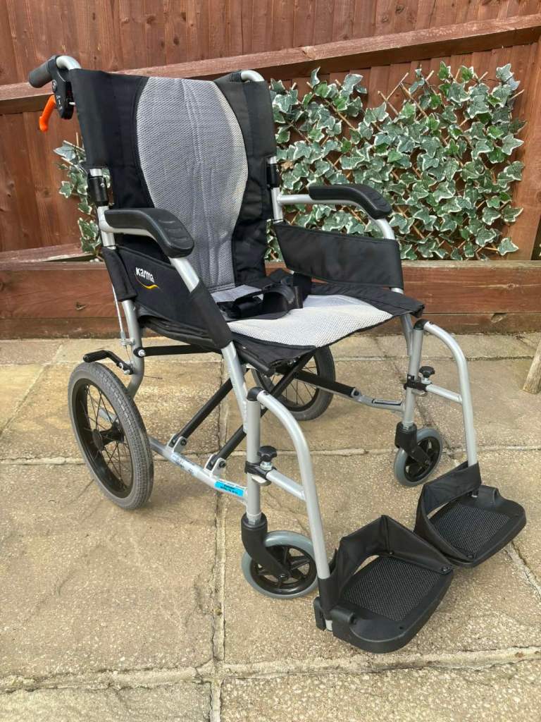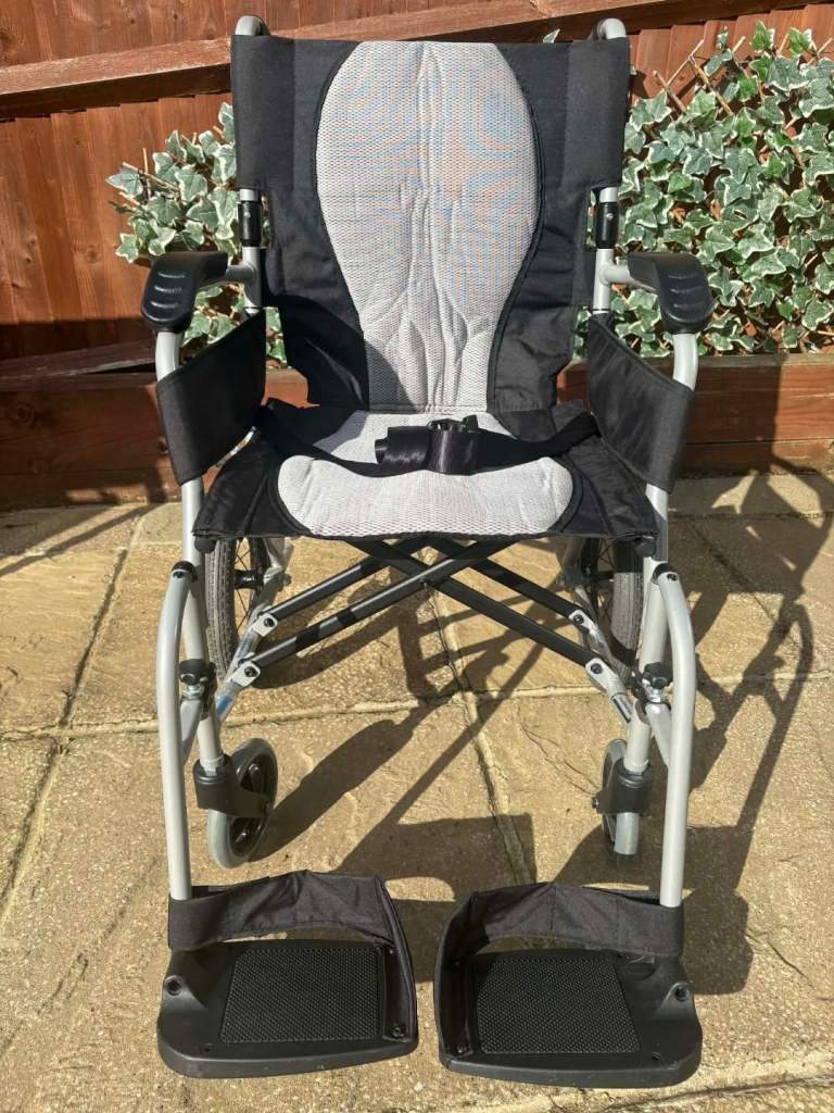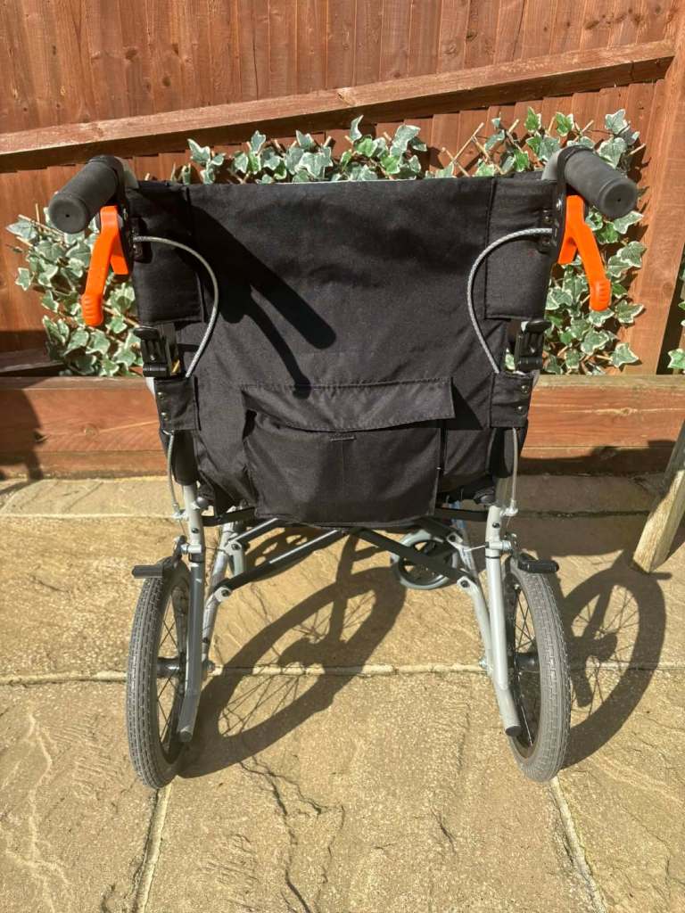 Attendant brakes, folding back and removable legrests make for easy transportation this 2 year old chair is in near perfect condition