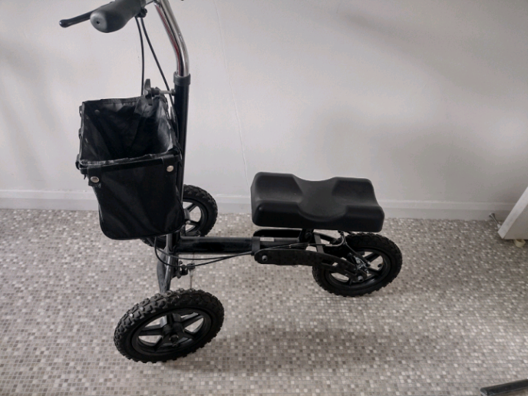 Retain mobility while recovering from ankle or foot surgery with this sturdy knee walker complete with brakes. Suitable for indoors and outdoors with three wide tyres and adjustable knee rest and handlebars. Comes with removable lidded bag. Cost £200 plus VAT.