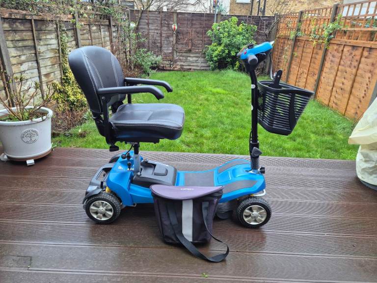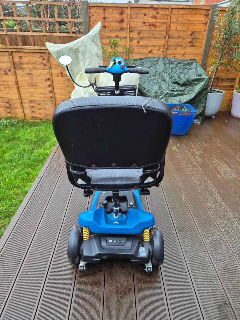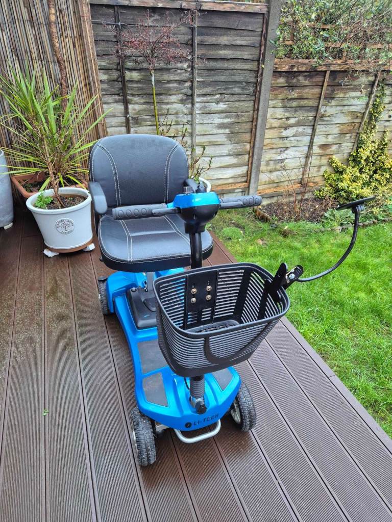 Li-Tech Neon 15 Mobility Scooter. A lightweight travel scooter that can be disassembled in seconds and easily fits in the boot of a car. Only weighs 33kg. Hardly used, and in good condition comes with basket bag and charger.