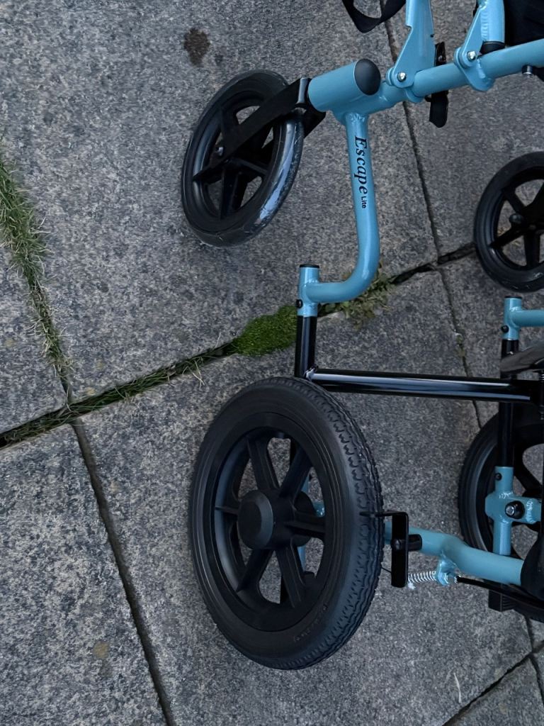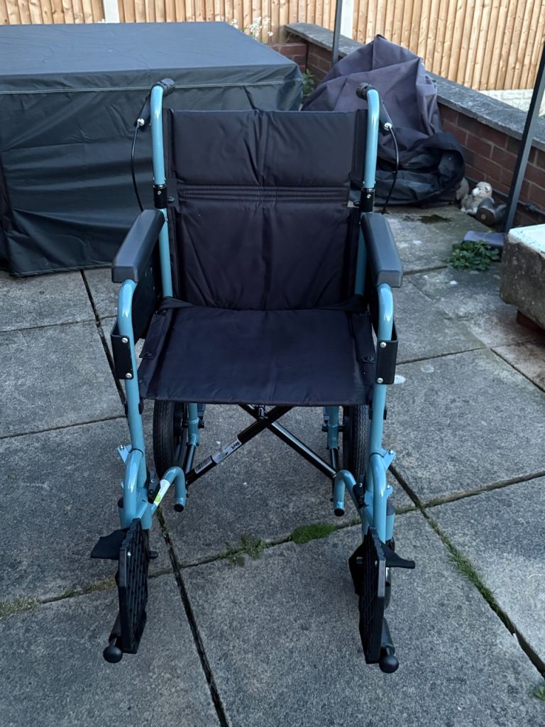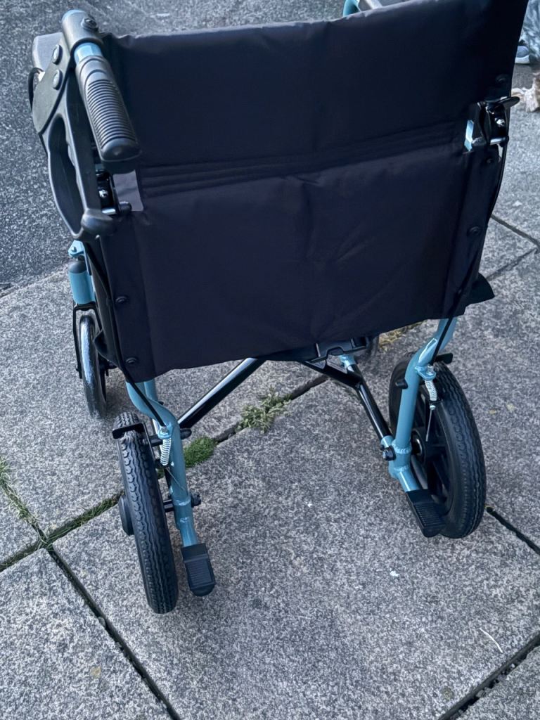 Posting for under a monthLightweight Transit Wheelchair – Blue and Black, Good Condition