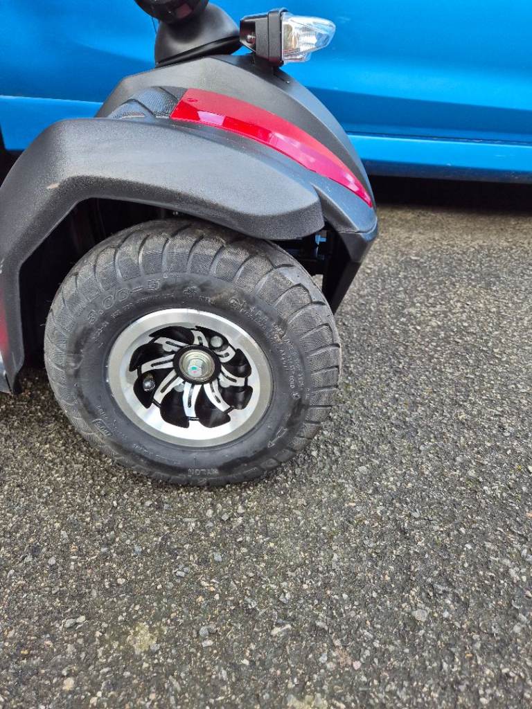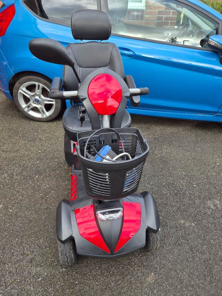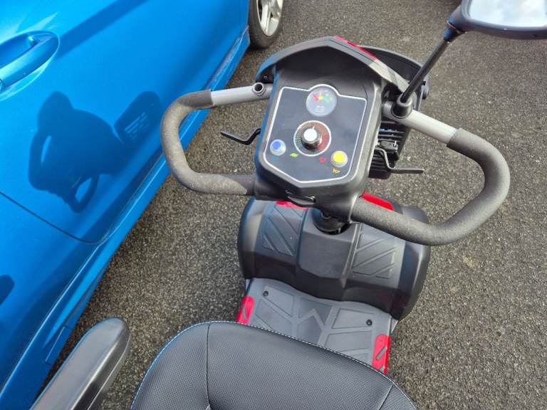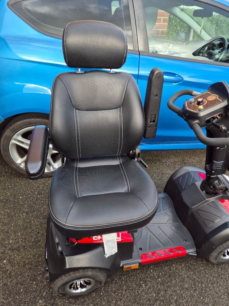 This mobility scooter always puts your comfort first, with the black pneumatic tyres, all round suspension and a padded seat with adjustable armrests.