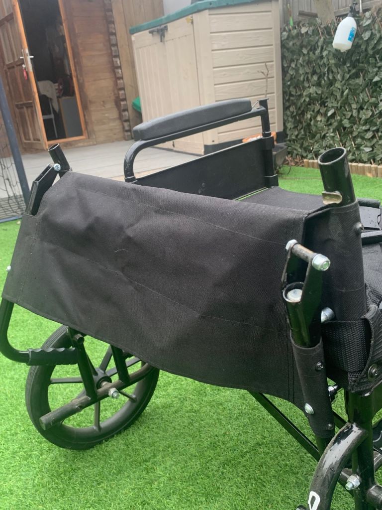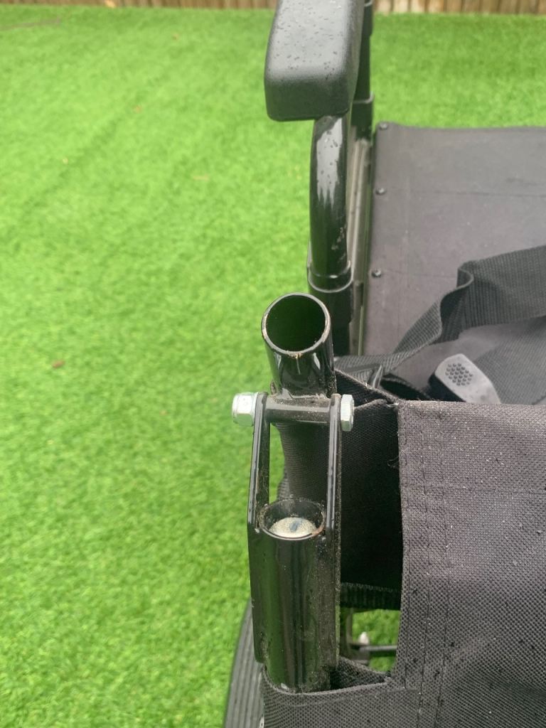 * As seen in photo the right bar has come off but this does not jeopardise the functionality of the wheelchair.