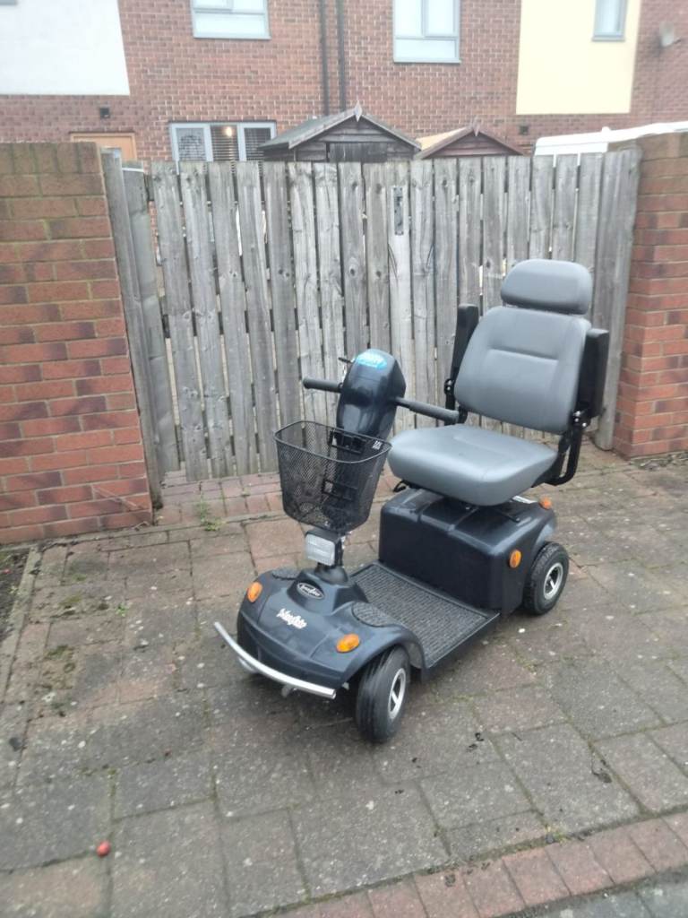 Mayfair freerider mobility scooter great little scooter does 4 to 6 mph nippy and great for loads of things like shopping and great for long runs out can do up to 15 miles on a full charge 25 stone weight limit tyres mint battery's good aswell my late mother loved it,it's very comfortable with having a high back leather seat any trial free delivery in the Northeast message me for details