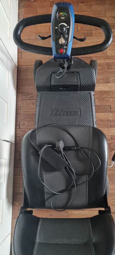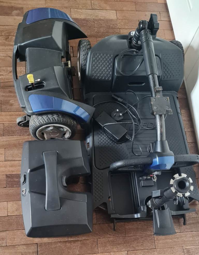 Mobility scooter 4mph with brand new batteries fitted,everything works as it should. It all folds down and comes apart for fitting in a car boot. Comes with charger.