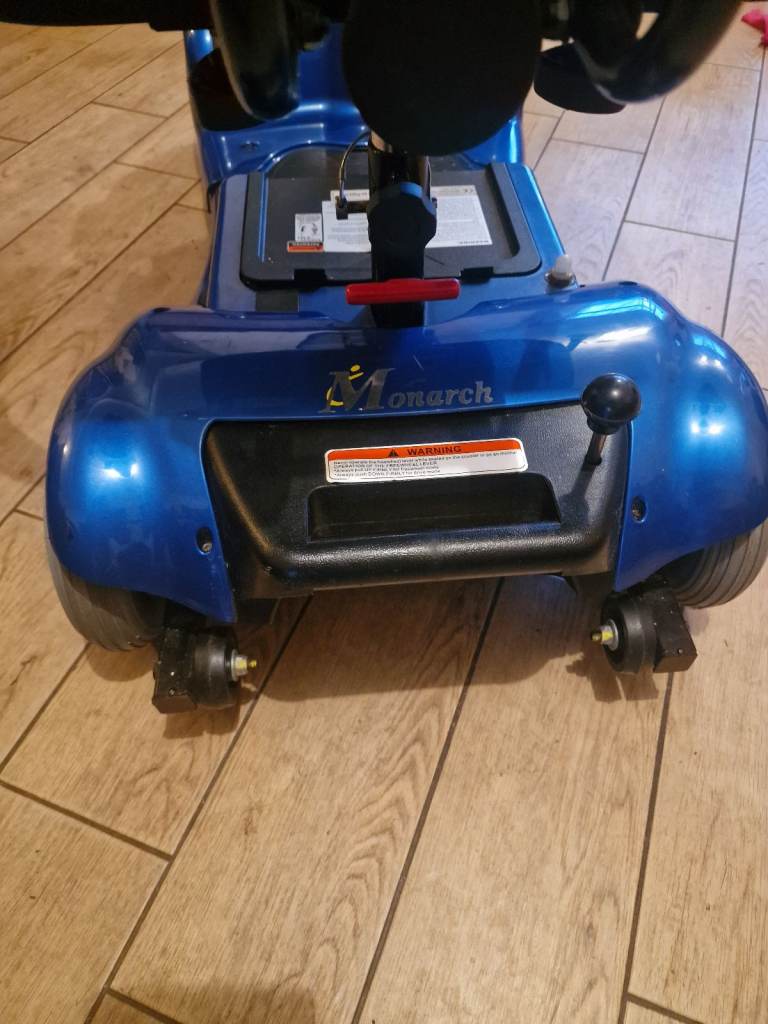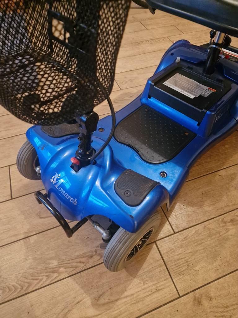This scooter is in excellent condition and excellent working order, it is the Monarch mini 4, it as had brand new 12v 15ah batteries installed ( 12/11/2025 ) i have proof of batteries purchase, this scooter dismantles so easy to fit in boot of a car, it comes with original charger
