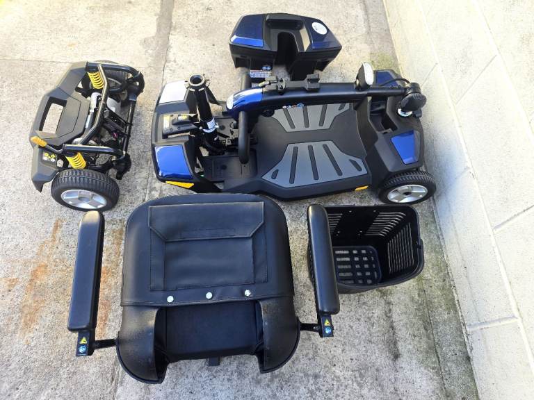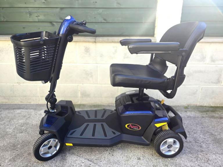 Here we have a 4mph Pride Apex Rapid, Car Boot Mobility Scooter in excellent condition, a nippy lovely scooter the buyer will not be disappointed with. Breaks down to fit into the boot of a car (see photo). Ideal for shopping centres. Comes with; basket, hooter, front light, front & rear suspension, swivel seat. 2 excellent batteries, good charger. 2 charging points, so you can either charge your scooter on the tiller arm or by taking off the battery box and charging from there. Buy with confidence, scooter fully serviced and has a 30 Day Return-To-Base-Guarantee. **We Do Not Have A Shop**, but viewing & test drive is more than welcome, and can be arranged by messaging/telephoning first. Delivery, if not too far, may be possible at the cost of fuel.