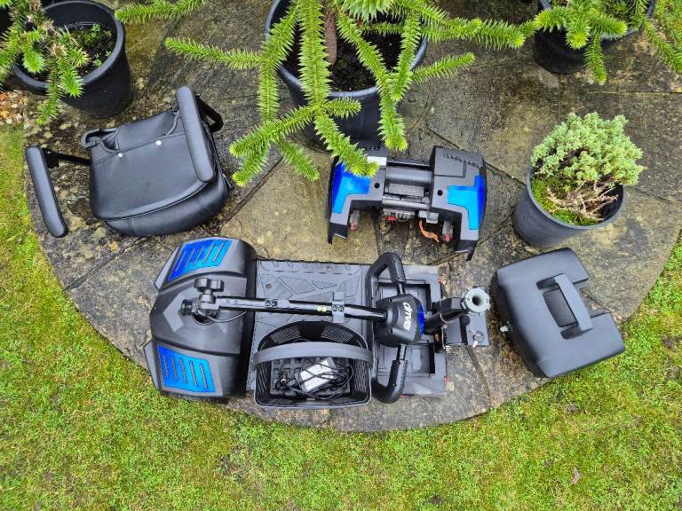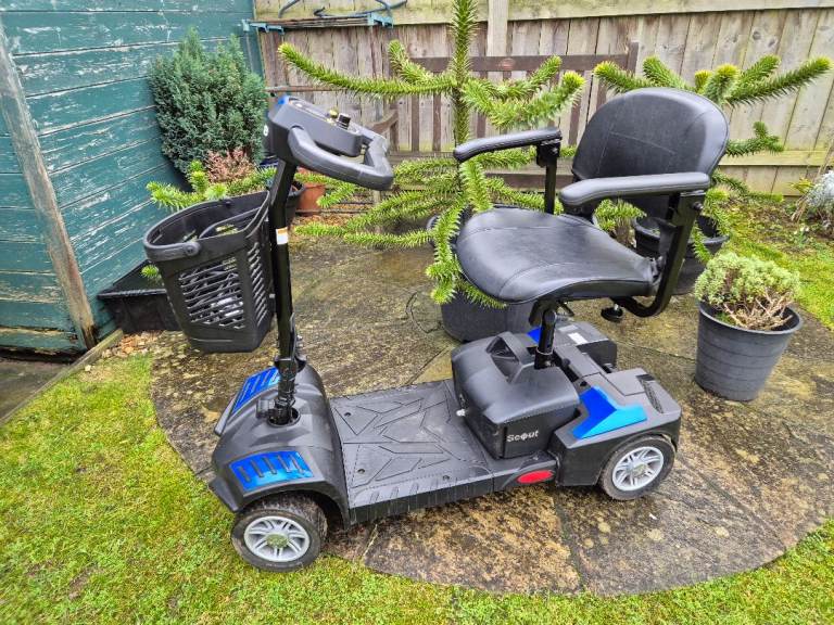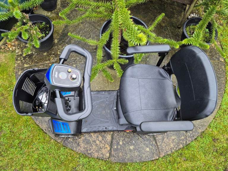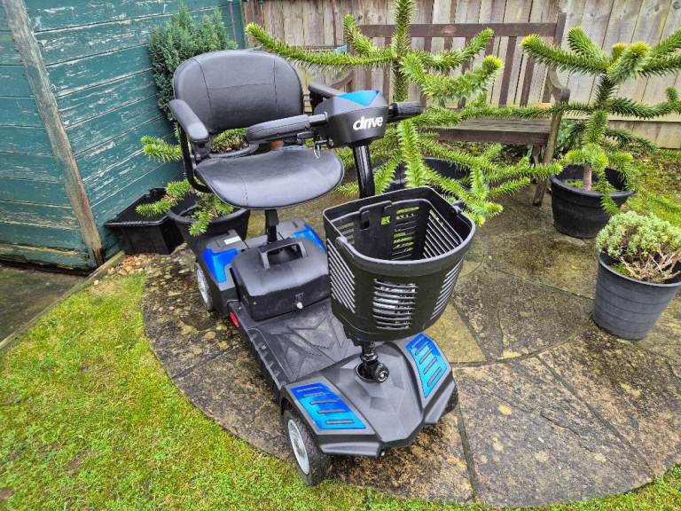 For Sale - Drive Scout 4mph 'Boot Type' Mobility Scooter. It is in excellent as new condition as has hardly been used. It dismantles easily in to 5 sections for storage and transportation. At only 48cm wide and 108cm in length, it is very agile and perfectly suited for use inside a busy supermarket or home. It has puncture proof/non-marking solid rubber tyres for durability and a comfortable smooth ride, an adjustable tiller, wraparound type handles, a 360 degree padded swivel seat, an automatic brake and a front storage basket. The top speed is 4mph and the maximum range is 10 miles. The maximum user weight is 20 stone. It will be sold with the battery charger and key. Expensive new. Comes from a pet and smoke free home. Possible local delivery. Please call me. (No Texts please). 0️⃣7️⃣7️⃣5️⃣6️⃣2️⃣7️⃣2️⃣9️⃣0️⃣1️⃣
