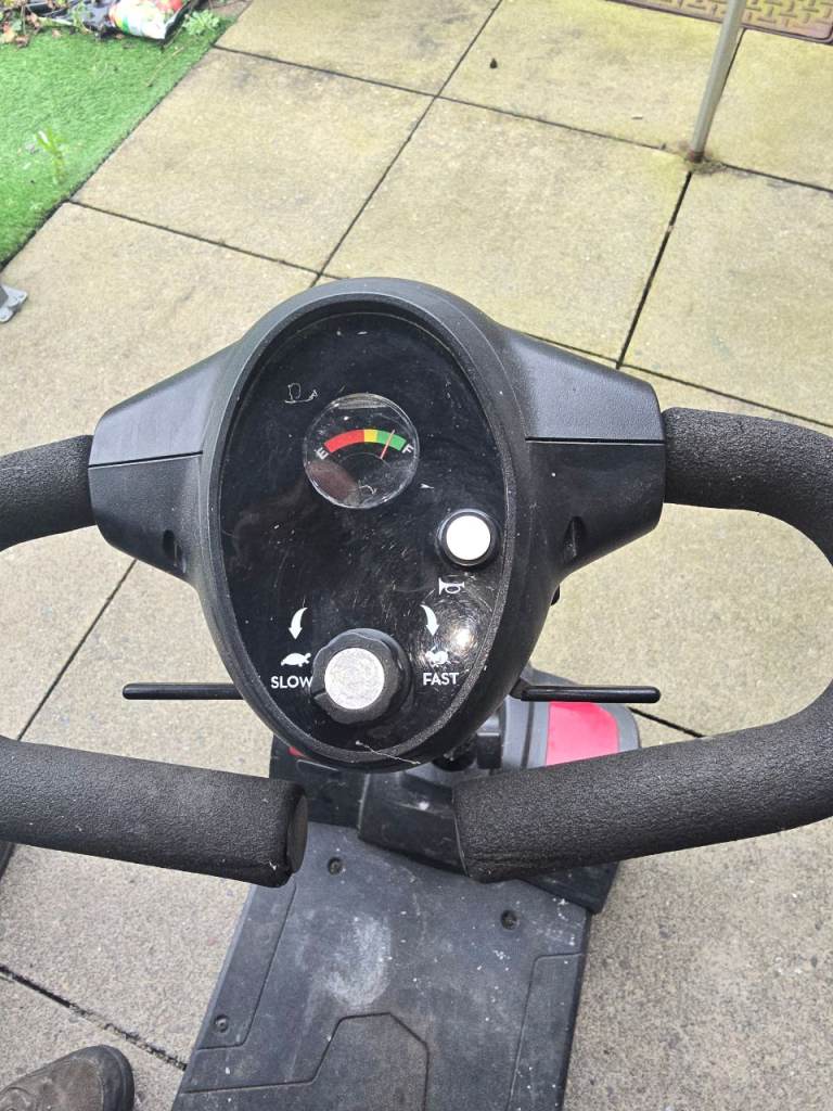 Mobility scooter come with 2 battery's one may need replacing in the near future. General wear and tear sponge handle grips weathered and small rip in back of seat! Has been a brilliant scooter but I have now upgraded.