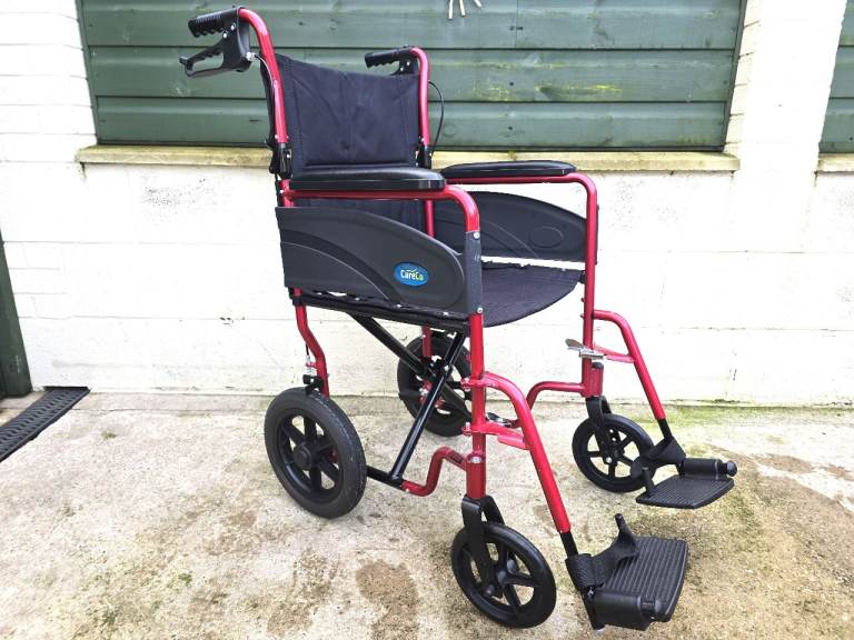 Here we have an Careco Fusion Lite Wheel Chair. Attended Controlled. Light-weight, in good condition. Seat belt, the feet rests are removable. Chair folds closed for easy transportation. Collection, but delivery may be possible.