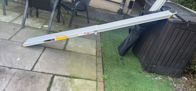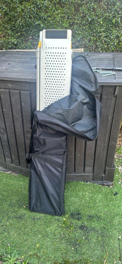 Telescopic aluminium mobility scooter ramps like new condition comes with zip up travel bag very strong ramps well made not the flimsy ones can be used for wheel chair as well these are over 100 new these double in length when extended
