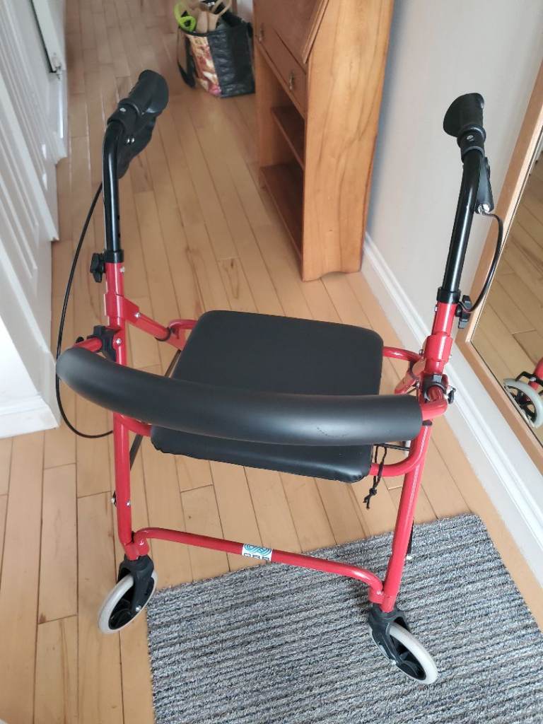 Sturdy mobility walker which can fold for transportation. Detachable shopping basket (not pictured). Only used a few times and in as new condition