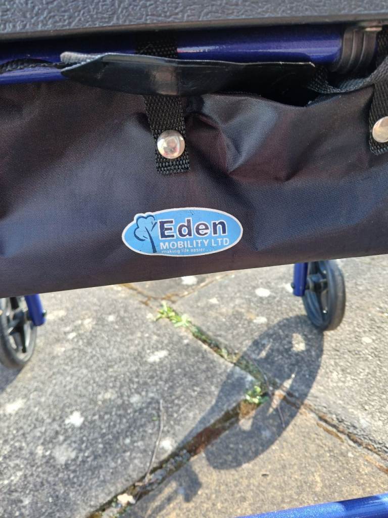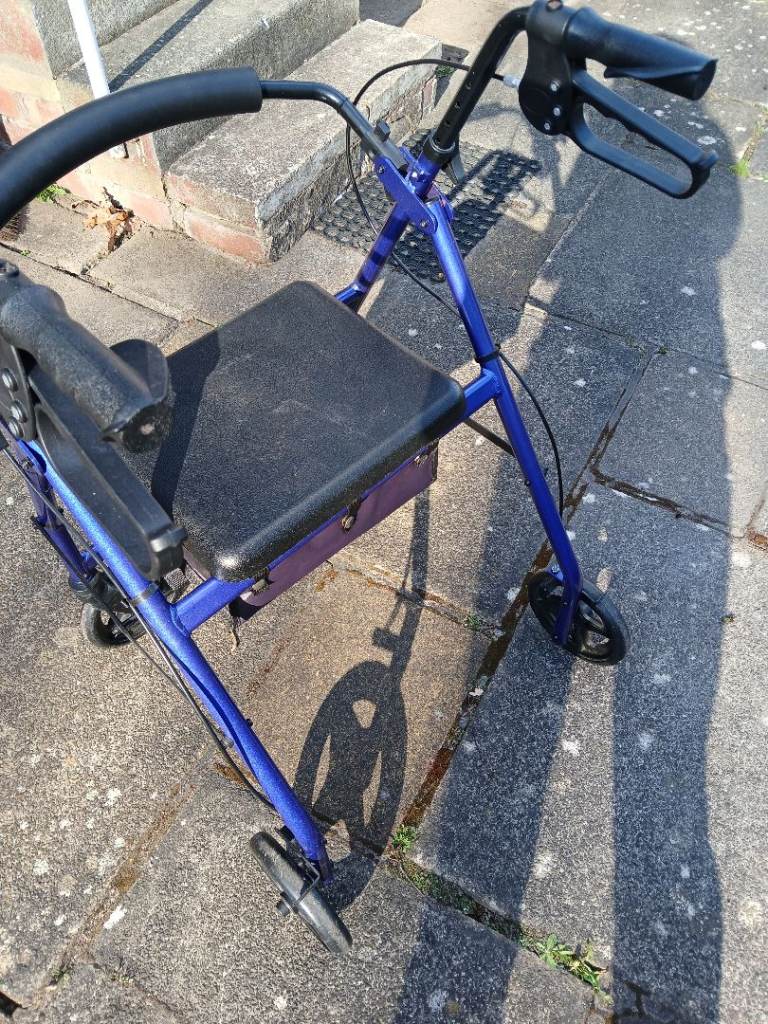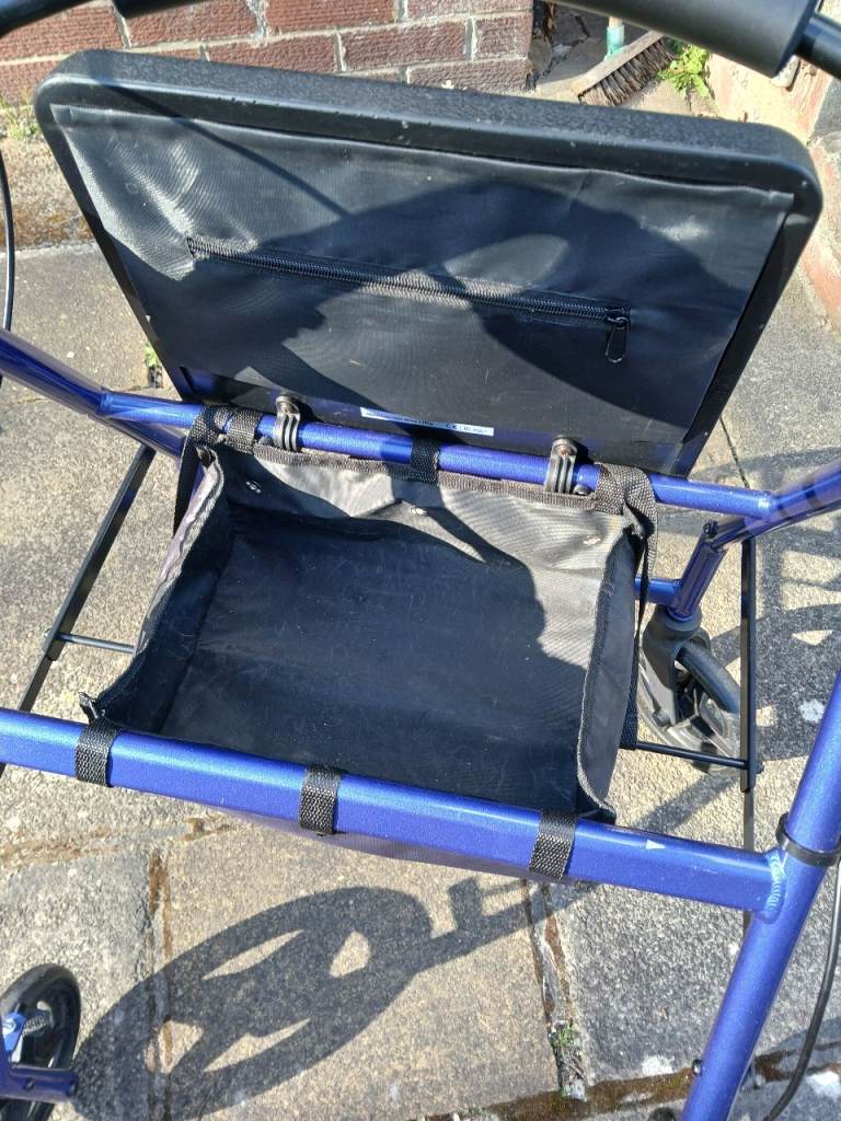Folding mobility walker with handy underseat storage. In a good stabile and usable condition.