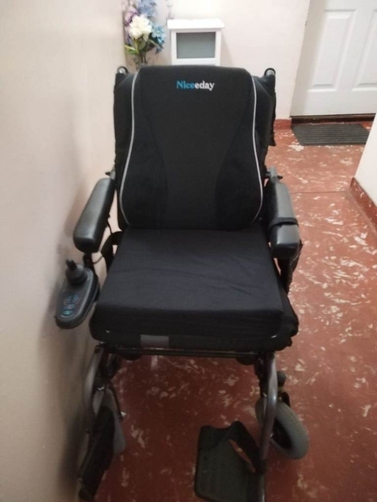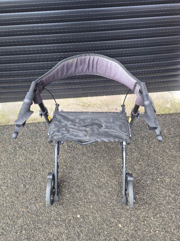 4 wheels, brakes, seat, back rest, folds up neatly when not in use or when needing to take on the bus etc, Lightweight, £10, Darlington.