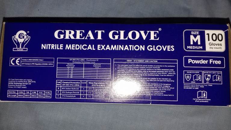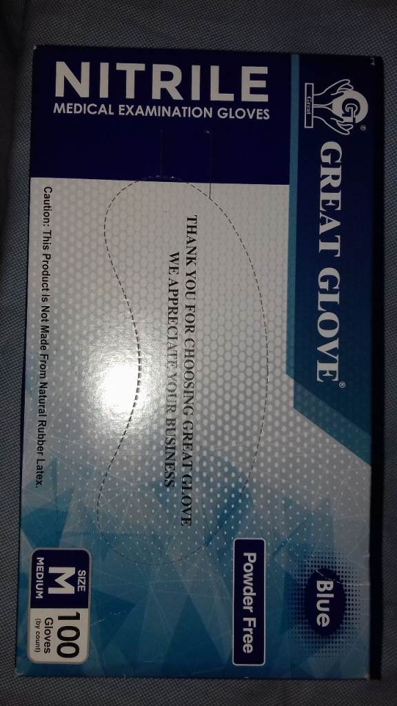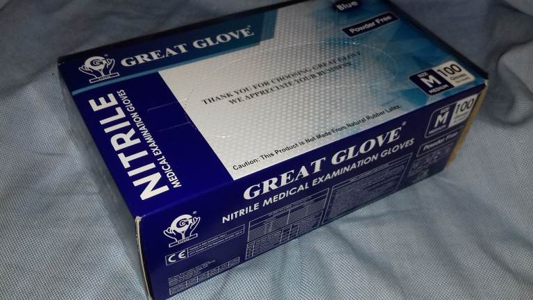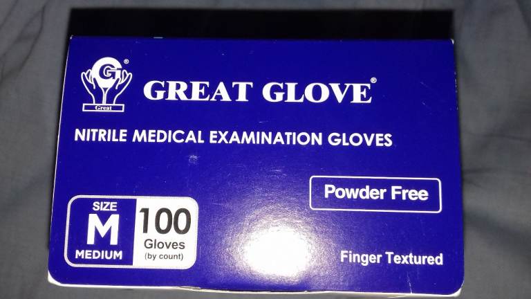 These are quality medical grade nitrile examination gloves. Please note these are not the cheapie vinyl gloves. A brand new unopened pack of 100, in medium size.