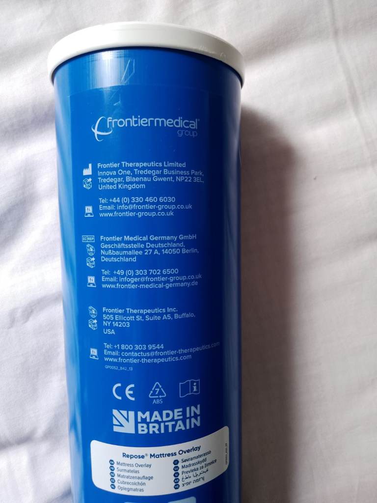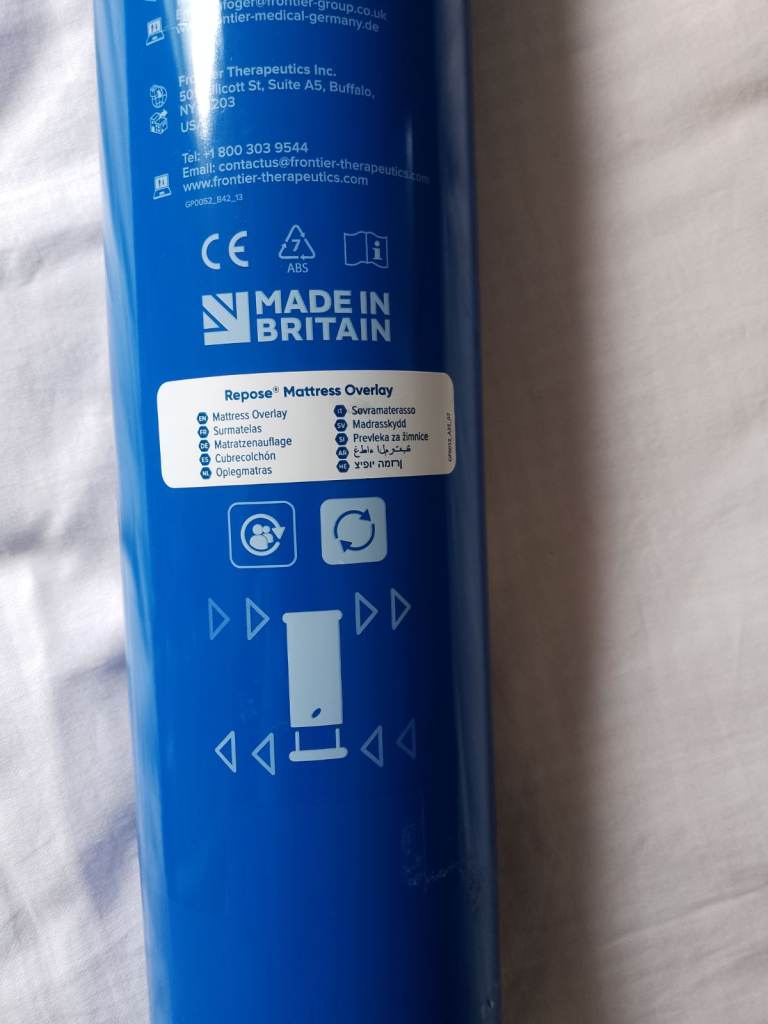 Helps prevent pressure sores, therapeutic inflatable single mattress. Packaged in a tube 18"X4".