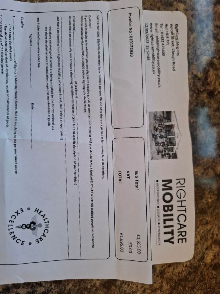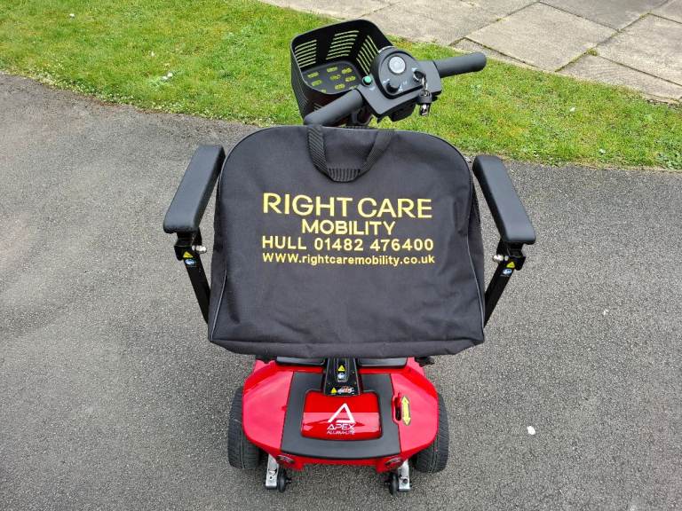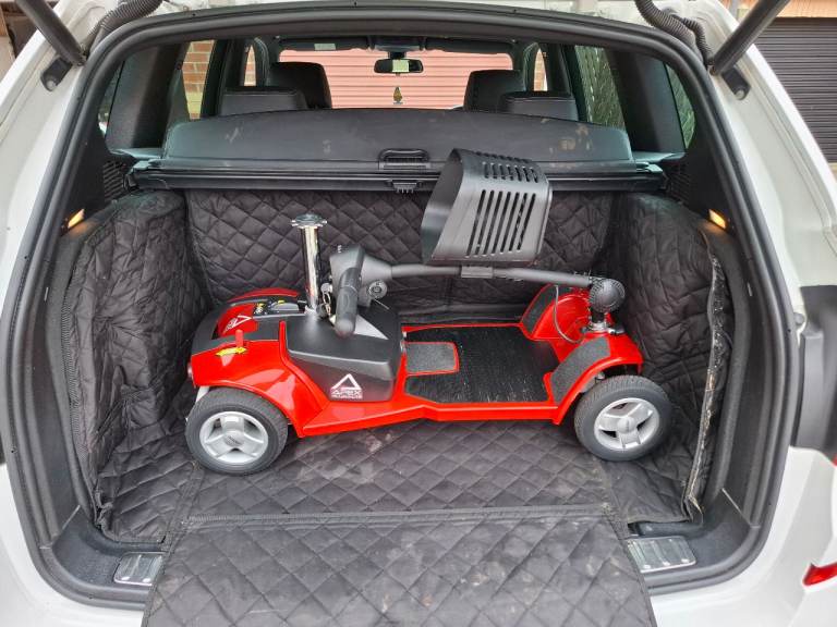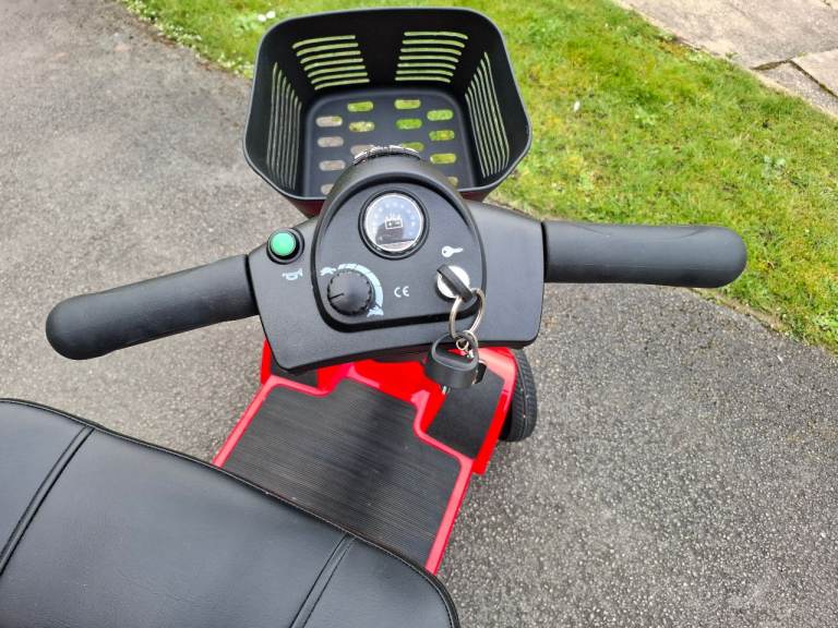 This scooter was bought in September 2023 for £1695. It has never been used. I have included the original invoice for transparency. The scooter is in excellent condition. Charges electrically and has two keys, chsrging cable, an adverse weather cover and a seat back pack for shopping. As the photos demonstrate the machine can be folded and carried in the boot of a car. This scooter is for use on public paths NOT msin roads. Buyer to collect.