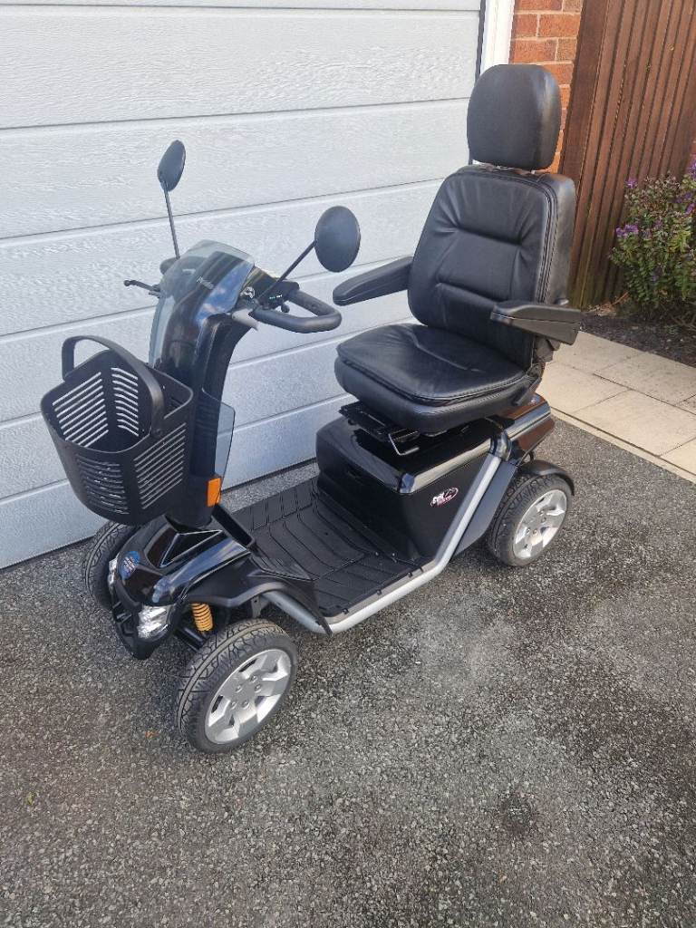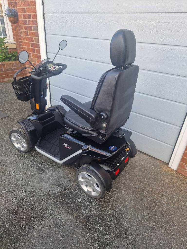 Brilliant scooter, will work on grass but not all terrain, very stable, with a 28stone capacity, and a travel distance of upto 26 miles on a full charge. Great condition, and the wheels show little use, and with a cover and charger, couple of marks on handle grips, which could be taped or replaced if desired.