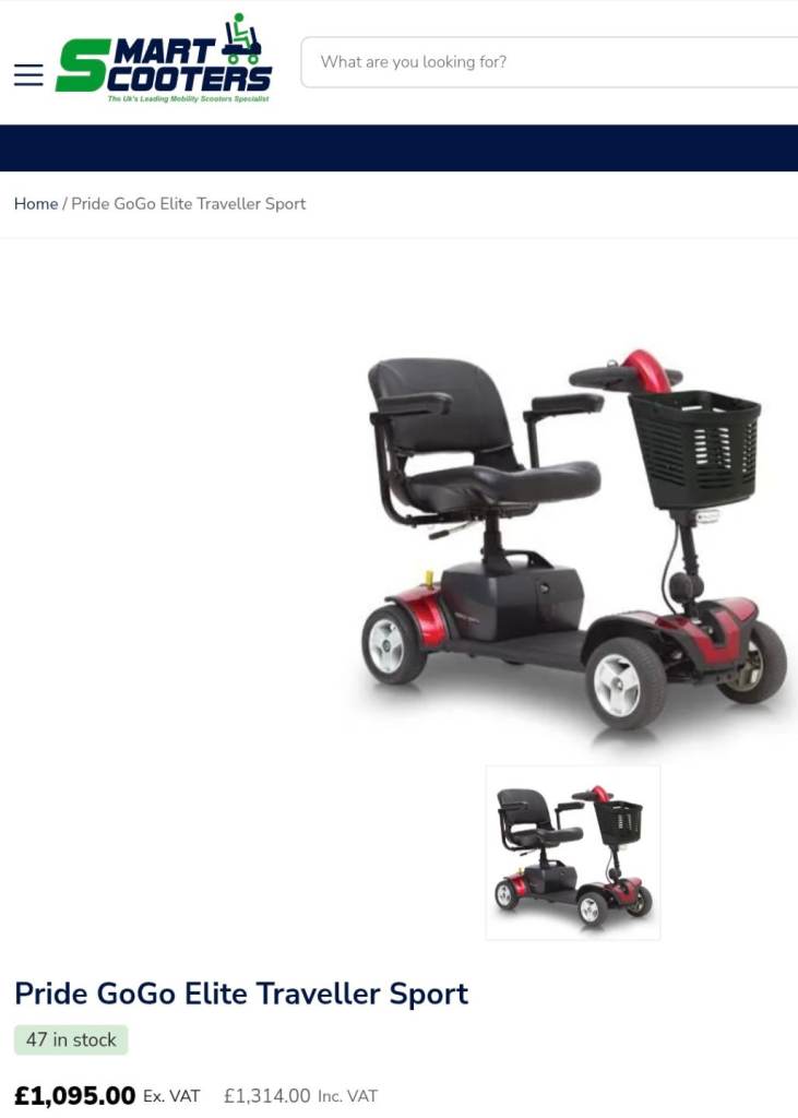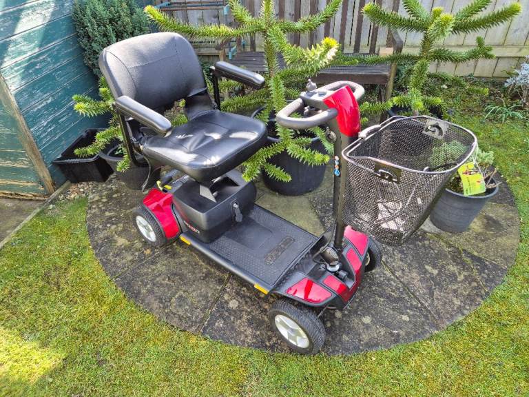 For Sale - Pride GoGo Elite Sport 4mph 'Boot Type' Mobility Scooter. It is in excellent condition with shiny red panels. It dismantles in to 5 sections for storage and transportation. At only 54cm wide and 109cm in length, it is very agile and perfectly suited for use inside a busy supermarket or home. It has seat post suspension and solid rubber tyres for a comfortable smooth ride, an adjustable tiller, wraparound type handles, a 360 degree swivel seat and an automatic brake. Being the higher spec 'Sport' model it also features a front & rear LED light, 9 inch wheels, two charging ports, (one being high level), an added larger deck space and a larger front storage basket. The top speed is 4mph and the maximum range is 14 miles as it has the the upgraded larger 18ah batteries. The maximum user weight is 23.3 stone. It will be sold with the battery charger and key. Very expensive new - RRP is £1300 including VAT. Comes from a pet and smoke free home. Possible local delivery. Please call me. (No Texts please). 0️⃣7️⃣7️⃣5️⃣6️⃣2️⃣7️⃣2️⃣9️⃣0️⃣1️⃣