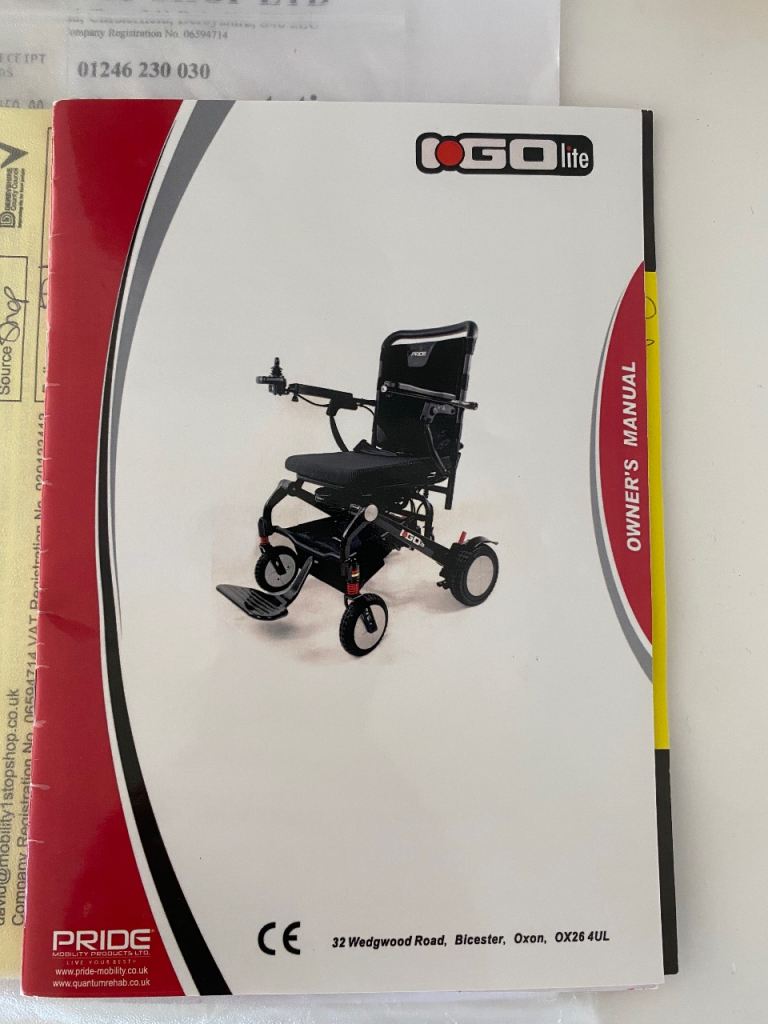 Genuine Pride iGo Lite folding electric wheelchair (cost £2,350 new in 2022).