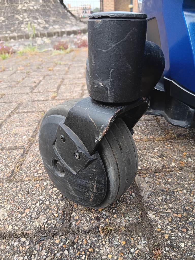 Some obvious signs of usage - please see pictures. Most noticeable are the marks / slight damage to the seat cover. They're not awful, but need to be mentioned. Also the marks to the caster wheels and their brackets are visible in photos.